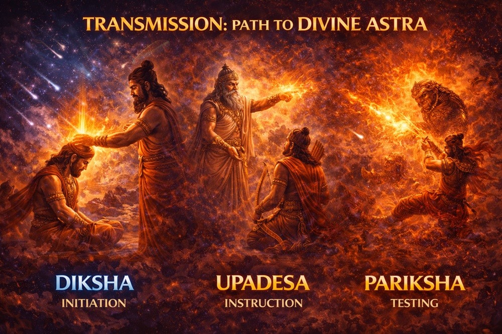 🔸 Divine blessings, astra are granted only after devoted austerity; therefore, they could not be obtained without a teacher, whose guidance and blessings were essential.