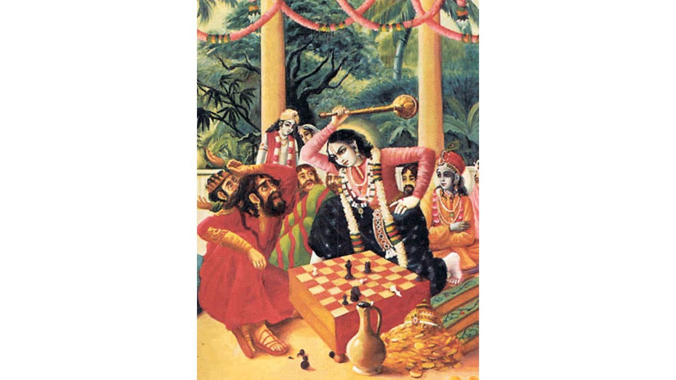 While the game went on, despite losing, Rukmi refused to agree to his defeat, which caused much anger in Balaram. Finally, infuriated by his lies and the insults Rukmi was aiming at the Yadava clan, Balaram killed him, bringing an end to a long-standing animosity between the two families.