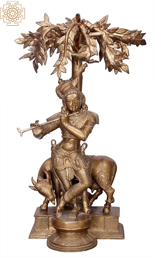Krishna is portrayed as both a divine figure and a playful, loving cowherd, symbolizing the connection between the soul and the Supreme Self.