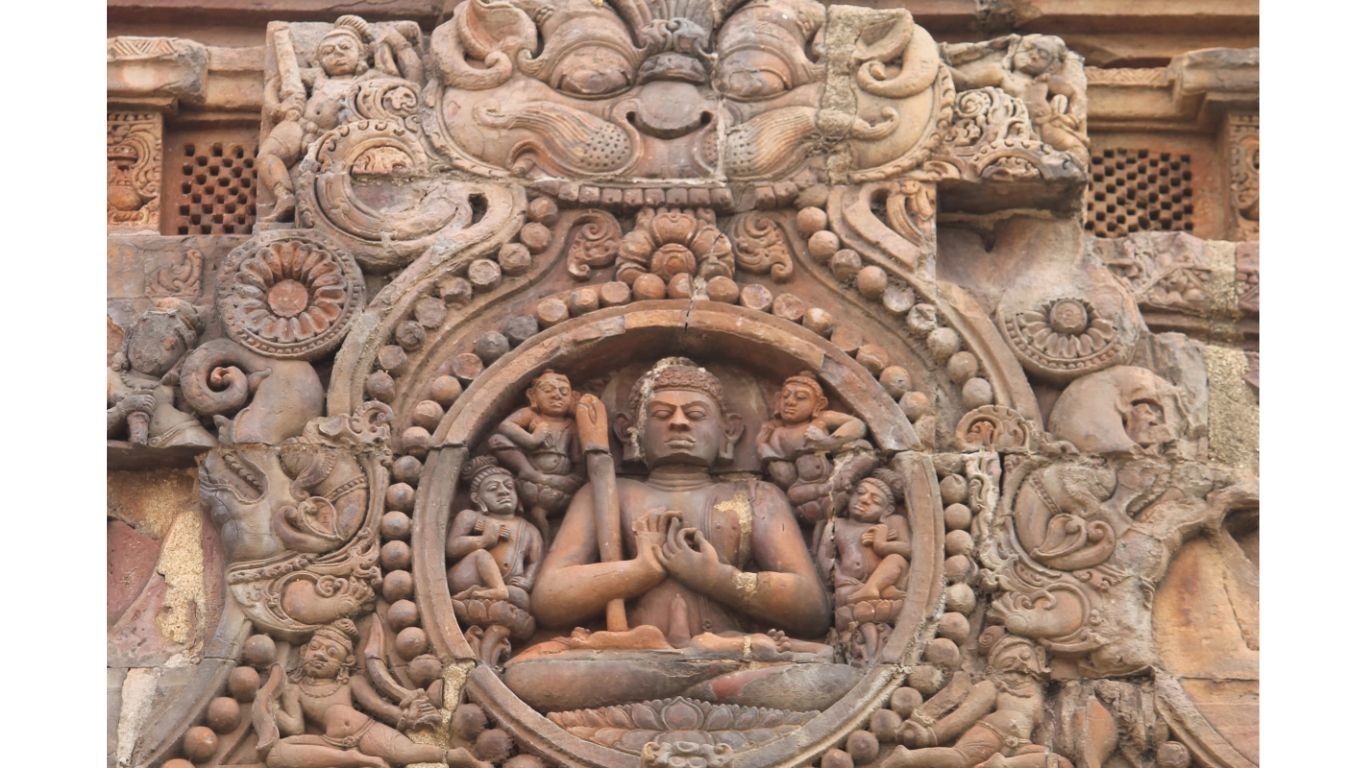A seated male figure in mulabandhasana, which is associated with asceticism and the practice of Brahmacharya in Yoga.