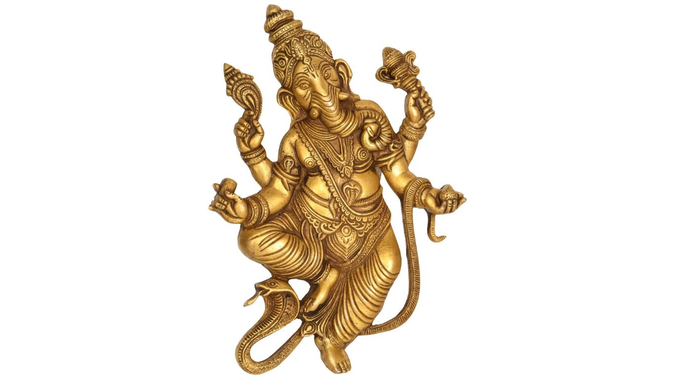 Brass Ganesha idols and wall hangings have a special place in Indian homes. Brass is a ritually pure material, a mix of copper and zinc, used for centuries, which is believed to carry spiritual energy and positivity. Due to its ancient presence in Indian tradition, artists craft brass into beautiful statues of Hindu gods and goddesses.