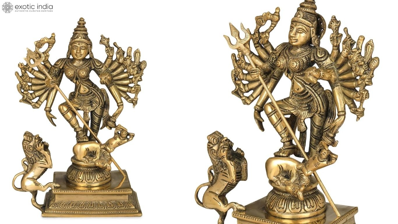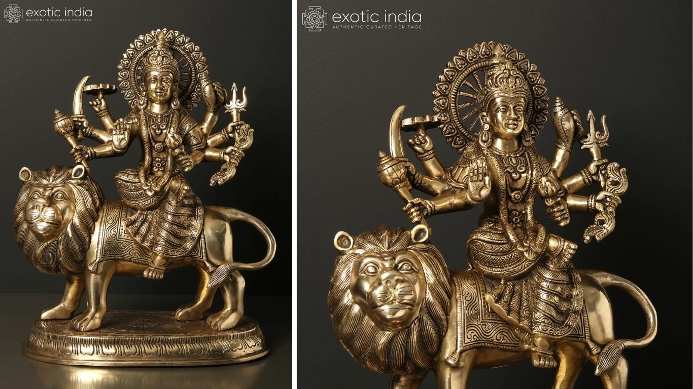 There are several types of brass statues of Maa Durga. Ten-armed or eight-armed statue of Maa Durga, Sherawali Mata (goddess Durga on lion), and Mariammman (the south Indian goddess, worshipped as a form of Durga) are some of the most popular aspects of the goddess, sculpted in brass.