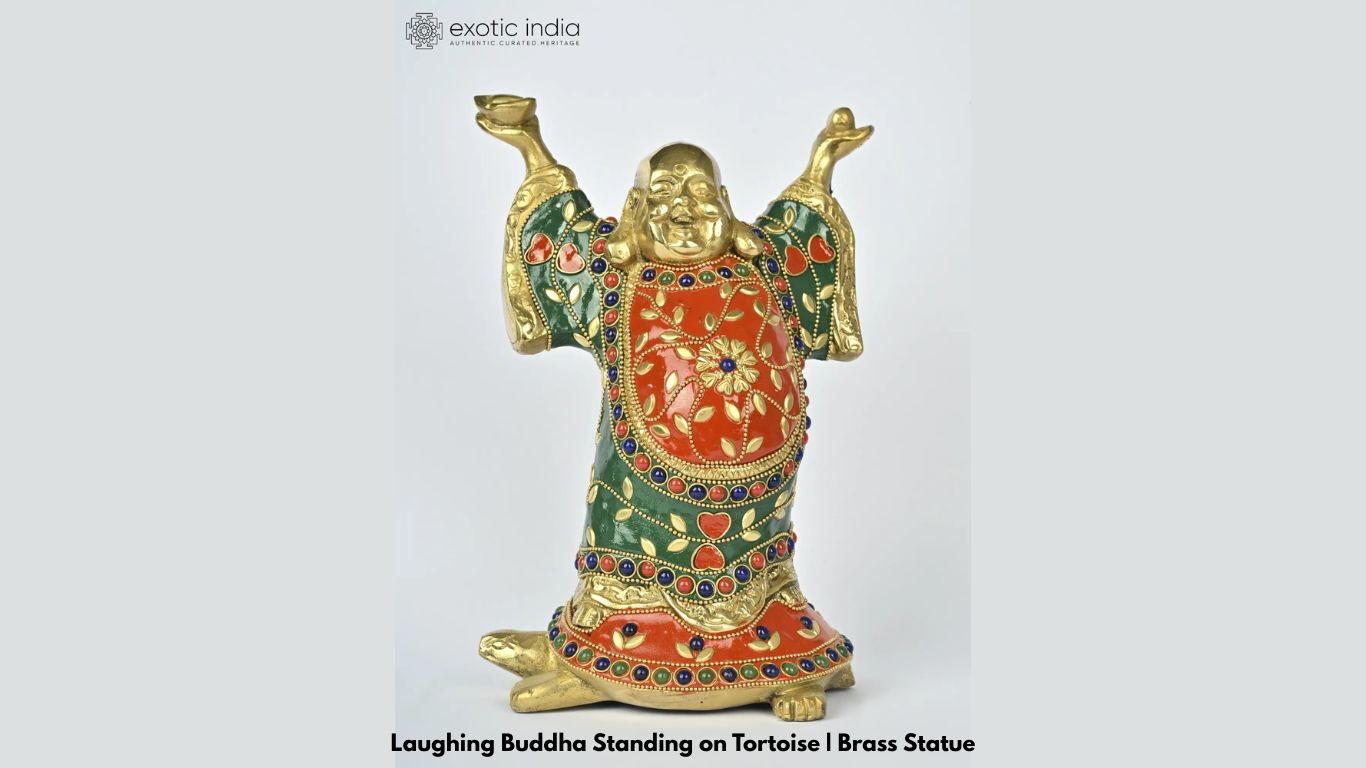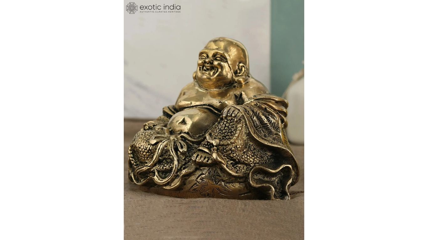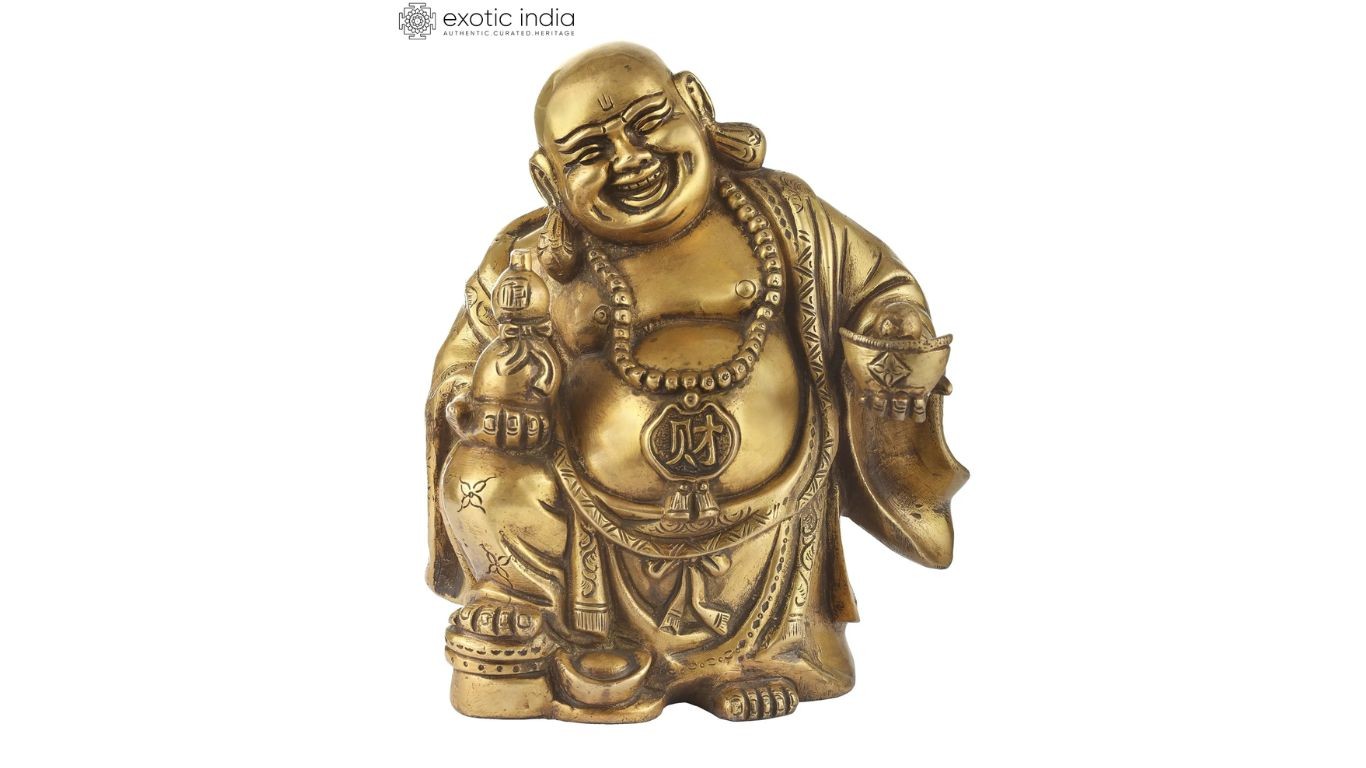 However, Exotic India Art prides on bringing to you handpicked collection of laughing Buddha statues in the purest material and created as per the rules of Feng-shui. Prepared by skilled artisans and selected by our experts, the idol collection on our website is a bouquet of the finest laughing Buddha statues. From buffed stone images to smooth metal icons in all the forms mentioned above, the assortment on the Exotic India Art website will definitely be the last stop in finding your favorite Laughing Buddha statue for your home.