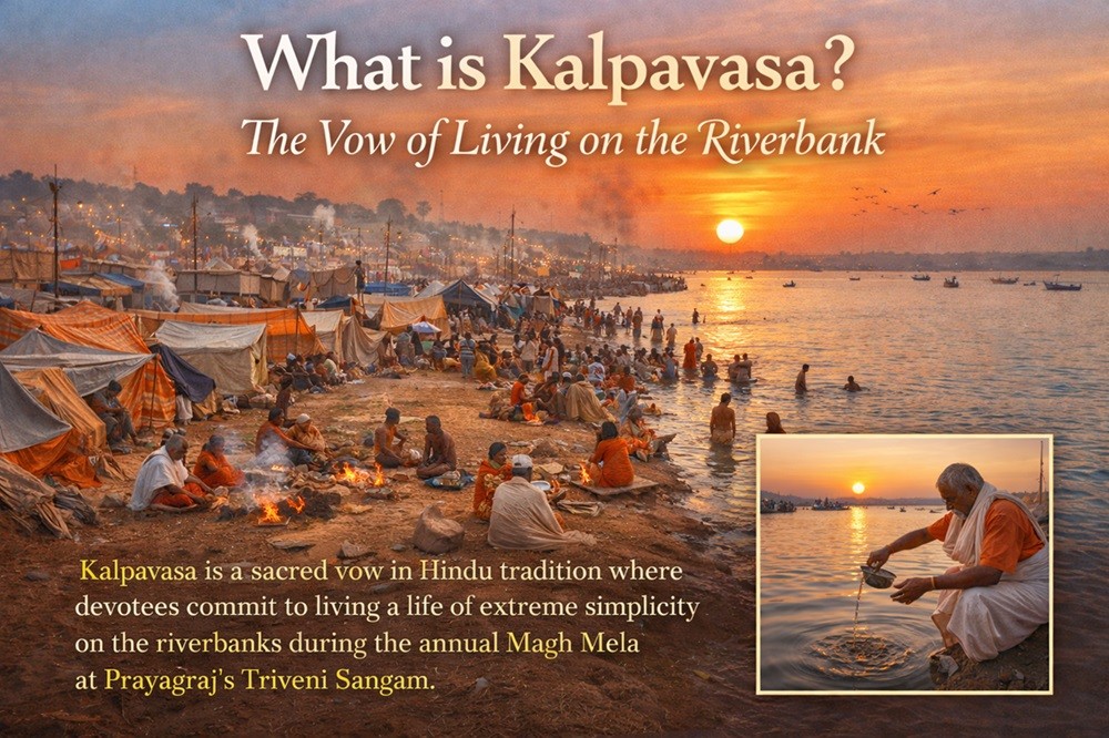 Kalpavasa is a month-long vow of austere living on riverbanks involving bathing, restraint, and charity.