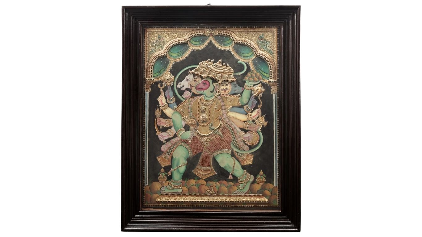 Seated Lord Panchmukhi Hanuman Tanjore Painting