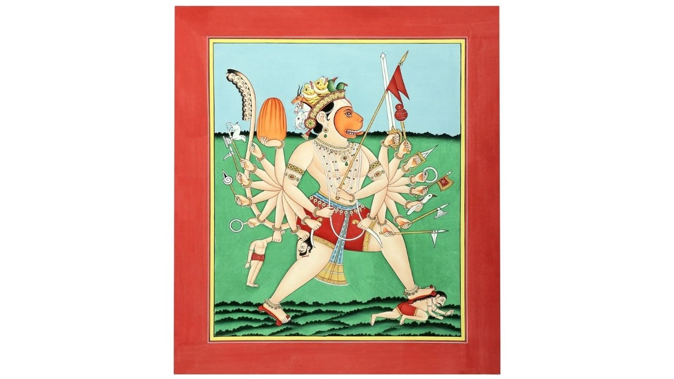 Panchmukhi Hanuman With Ten Arms | Acrylic On Paper | By Shrutee Bhave