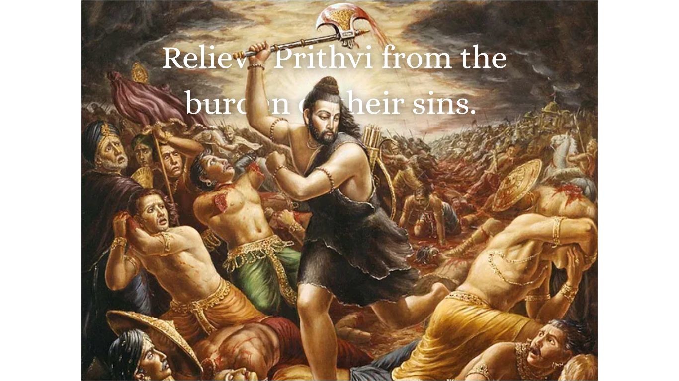 The most popular story of Parashuram is the legend of him teaching a lesson to the sinning Kshatriyas. According to the Puranas, when the kings, who were meant to uphold Dharma, were following the path of Adharma, Parashuram (Vishnu) came to the earth and annihilated the kings to relieve Prithvi (Mother Earth) from the burden of their sins.