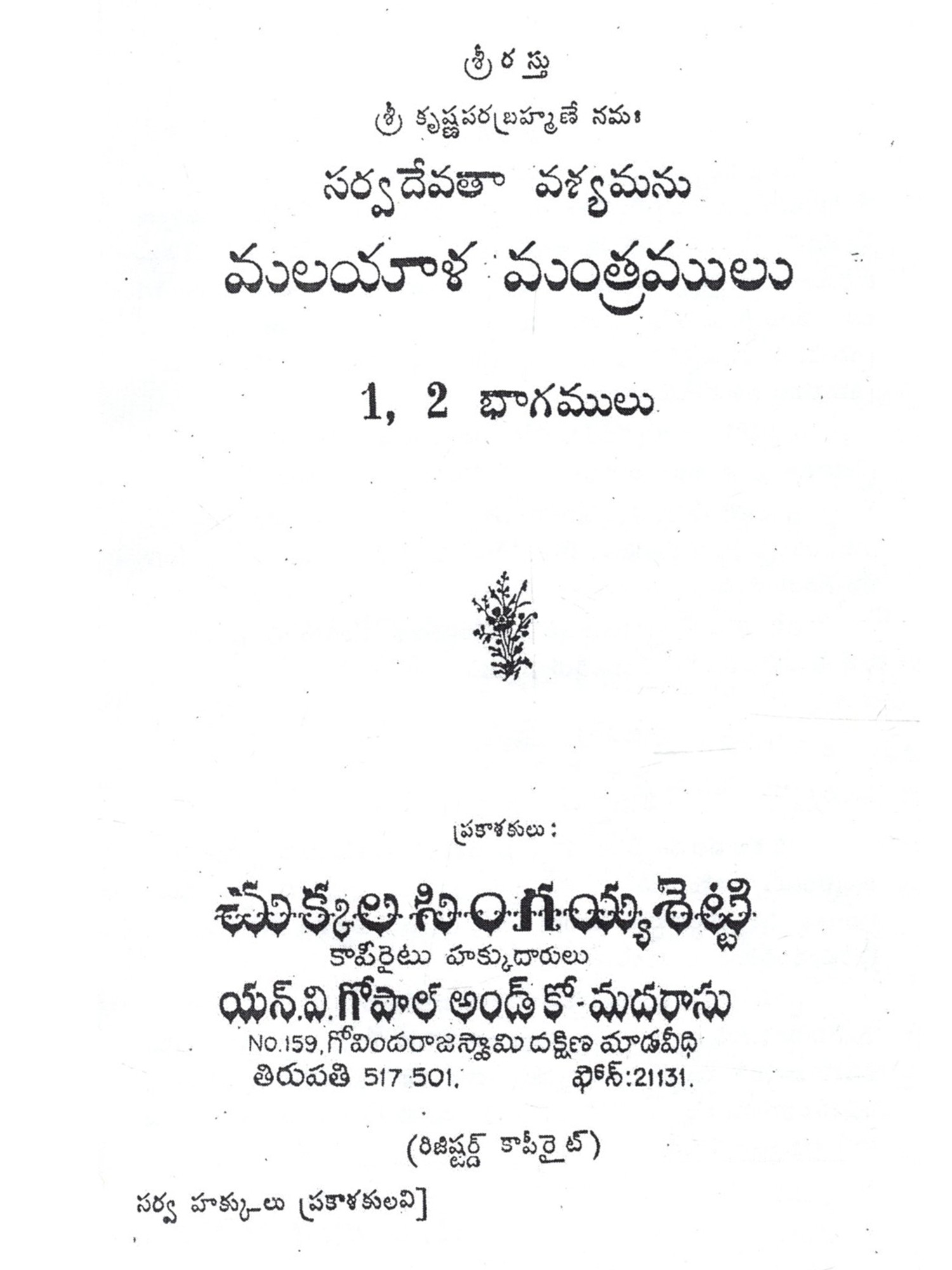 మలయాళ మంత్ర రాజీయం- Sarvadevata Siddhyagu Malayalam Mantra Rajyam: An Andhra Language Compilation of Ancient Kerala Language (Telugu)