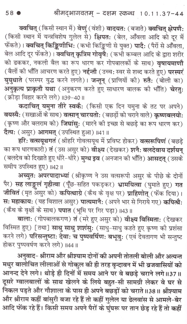 Language: Sanskrit Text with Word to Word Meaning and Hindi Translation