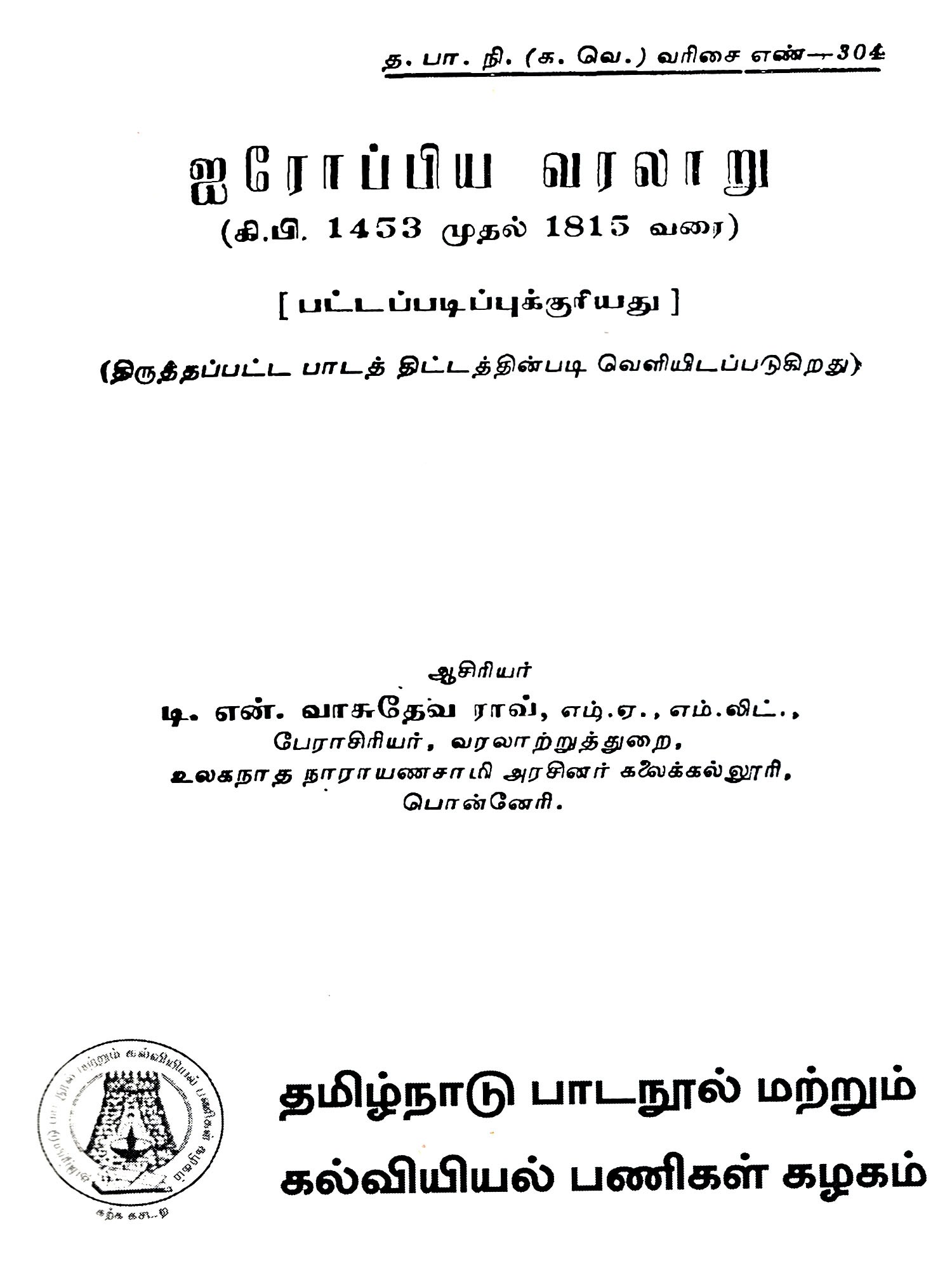 ஐரோப்பிய வரலாறு: History of Europe- Since 1453 A.D. (Tamil)