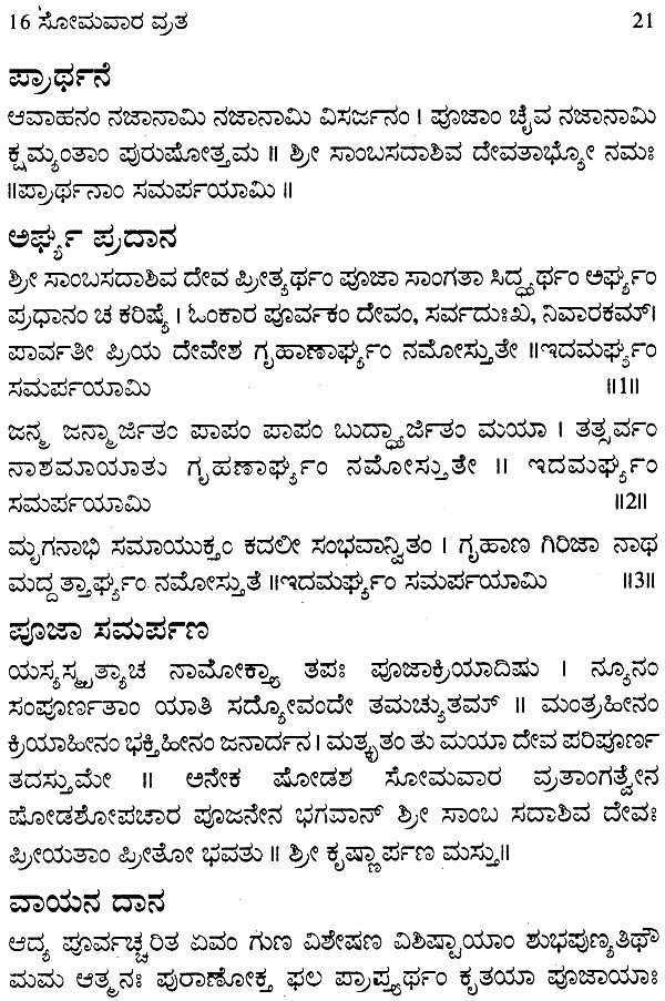 16 ಸೋಮವಾರ ವೃತ- 16 Monday Vrata (with Pooja Method in Kannada)