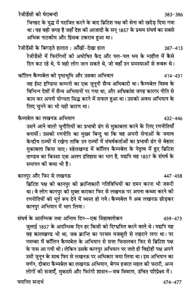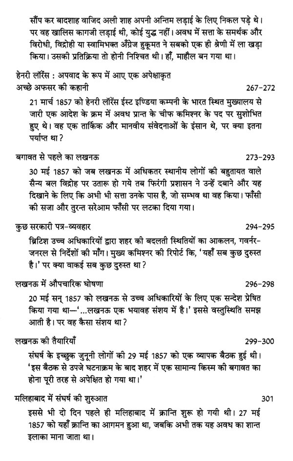 अवध का इतिहास एक वृहद् विषय है। यह शून्य से शुरू होकर उत्कर्ष और ईस्ट इण्डिया कम्पनी से ब्रिटिश साम्राज्य के महत्त्वपूर्ण प्रक्षेत्र में बदलने की कहानी है तो शेखजादाओं से आरम्भ होकर नवाबी युग और फिर बादशाहत, 1857 के लम्बे चले संघर्ष का घटनाक्रम भी है। यह उत्तर भारत की उस ऐतिहासिक विरासत, संस्कृति और तहजीब का जीवन्त और विशद आख्यान है, जिसे इतिहास के किसी कालखण्ड में अनदेखा नहीं किया जा सकता। यह पुस्तक अवध के पूरे इतिहास को समेटने का प्रयास न होकर उसके बनने, बिगड़ने, सँभलने और नवाबी युग से बादशाहत के साम्राज्य में फैलने/संकुचित होने की वह कहानी है, जिसे हम जानने की उत्कण्ठा रखते हैं। इस पुस्तक में शेखजादाओं के बाद से सआदत खान और सफदरजंग के गौरवशाली इतिहास का वर्णन है, उनके शून्य से शिखर तक पहुँचने और चर्चित आखिरी बादशाह वाजिद अली शाह के शासन काल तक दरक कर विस्मृत हो जाने के समय की कथा के मुख्य बिन्दुओं का लेखन किया गया है। सन् 1801 के बाद से, जब ब्रिटिश ईस्ट इण्डिया कम्पनी अपनी निश्चितता के साथ उत्तर भारत की प्रमुख रियासतों में पाँव पसार रही थी तो अवध पर उनकी सतर्क निगाह शुरू से ही बनी हुई थी। ऐसा एक तो इस प्रान्त की सामरिक स्थिति के कारण था, तो यहाँ की समृद्धि, सामरिक स्थिति और दिल्ली से निकटता के कारण। इसीलिए यह किताब उन घटनाक्रमों का अनायास ही इतिहास-सम्मत विश्लेषण करने की कोशिश भी करती है, जिनके माध्यम से ईस्ट इण्डिया कम्पनी की सत्ता अवध को अपने साम्राज्य का अभिन्न अंग बनाने को बेचैन थी। पुस्तक के दूसरे हिस्से में 1857 की क्रान्ति की लखनऊ और अवध की जमीं पर सबसे बड़ी उपलब्धि चिनहट की लड़ाई की विस्तृत चर्चा है। इस एक दिन के युद्ध में, जो 30 जून 1857 को हुआ था, ईस्ट इण्डिया कम्पनी की सेना को उनसे अलग हुए बागी संघर्षकारी सैनिकों और स्थानीय लोगों के अनुशासित तथा जुनूनी बल ने एक अप्रत्याशित और कड़ी शिकस्त दी थी। ब्रिटिश ईस्ट इण्डिया कम्पनी की यह पराजय इतनी निर्णायक थी कि कम्पनी के अनेकों सैनिकों-अफसरों को अपनी जानें गंवानी पड़ीं और वे जो भागकर रेजीडेंसी में घुसे तो अगले कई महीनों तक संघर्षकारी सैनिकों और जुनूनी क्रान्तिकारियों ने उनकी वहीं घेराबन्दी कर बाहर निकलने के रास्ते बन्द कर दिये। लखनऊ और अवध में ये स्थितियाँ देर से आयीं, लेकिन मजबूती से चलीं, देर तक कायम रहीं और वहाँ के गाँव-गाँव तक फैल गयी थीं। अवध प्रान्त के चीफ कमिश्नर हेनरी लॉरेंस, जिन्हें भारत के अगले गवर्नर जनरल के पद के लिए नामित किया गया था, सहित ब्रिटिश पक्ष के अन्य कई महत्त्वपूर्ण अधिकारी-सैनिक भी मारे गये थे। ऐसे में इंग्लैण्ड सरकार आततायी भूमिका के रूप में ईस्ट इण्डिया कम्पनी के जायज नाजायज कार्यकलापों का समर्थन करने, इ