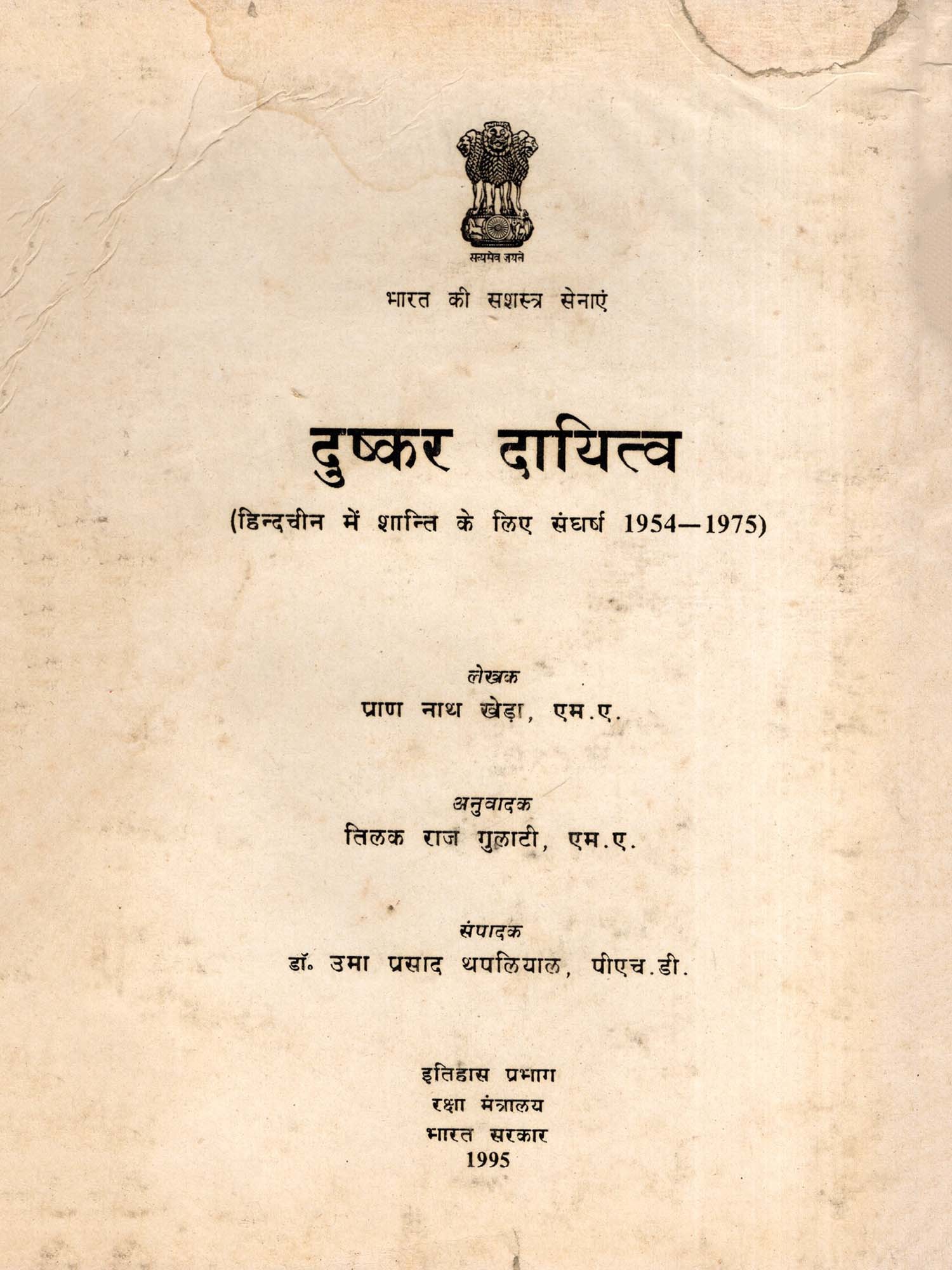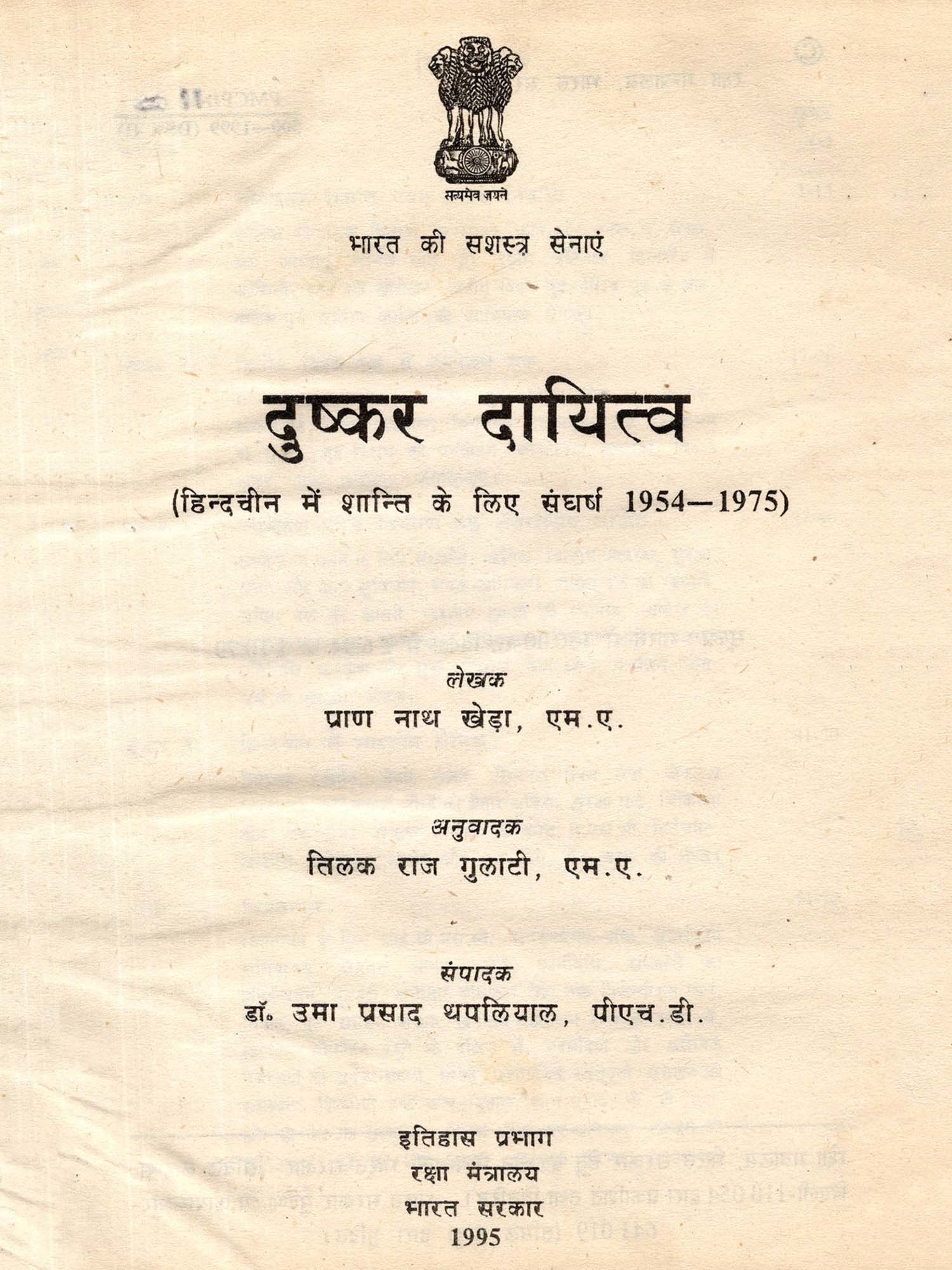 दुष्कर दायित्व (हिन्दचीन में शान्ति के लिए संघर्ष 1954-1975)- Arduous Responsibility: The Battle for Peace in Indo-China 1954–75 (An Old and Rare Book)