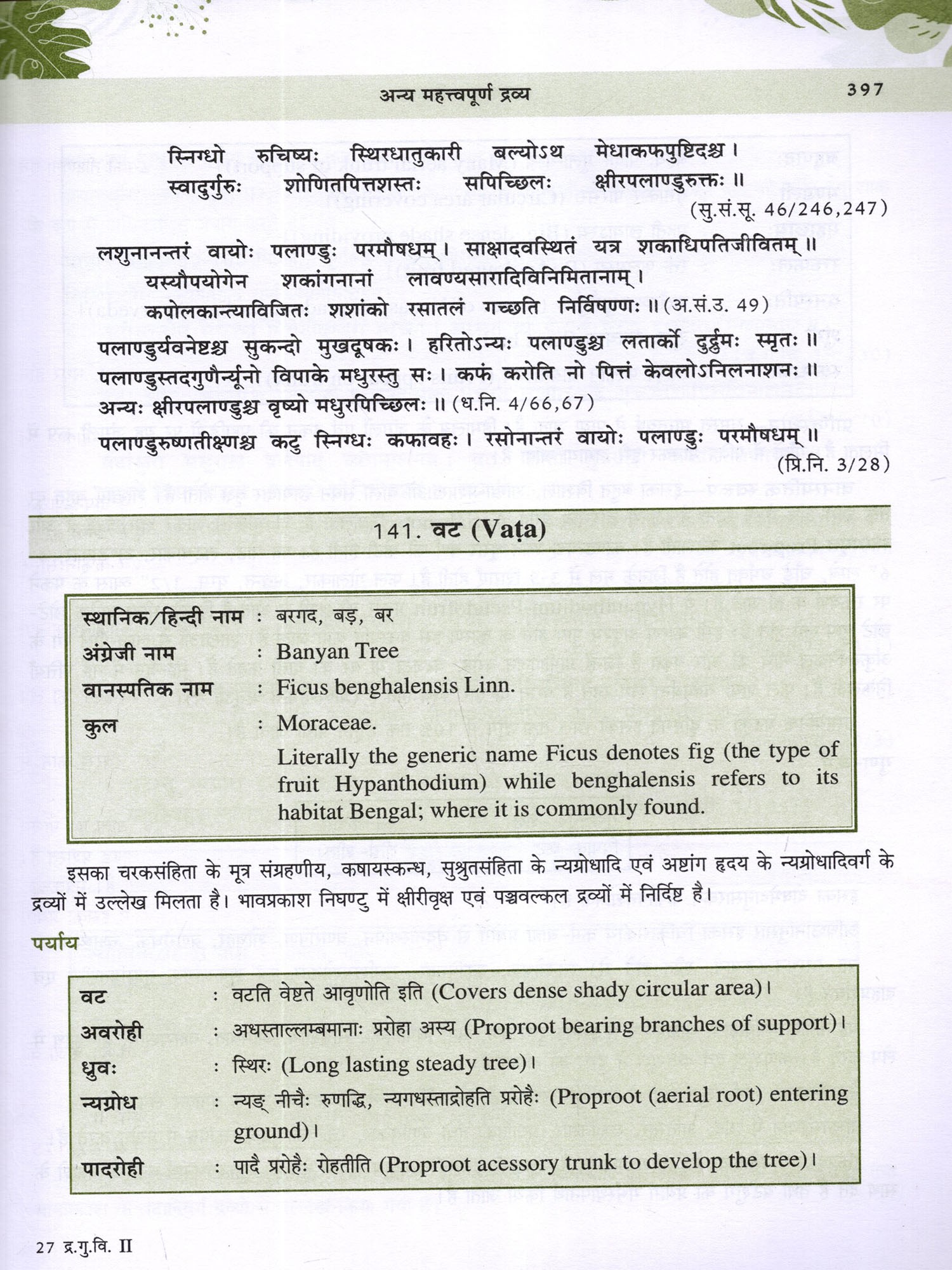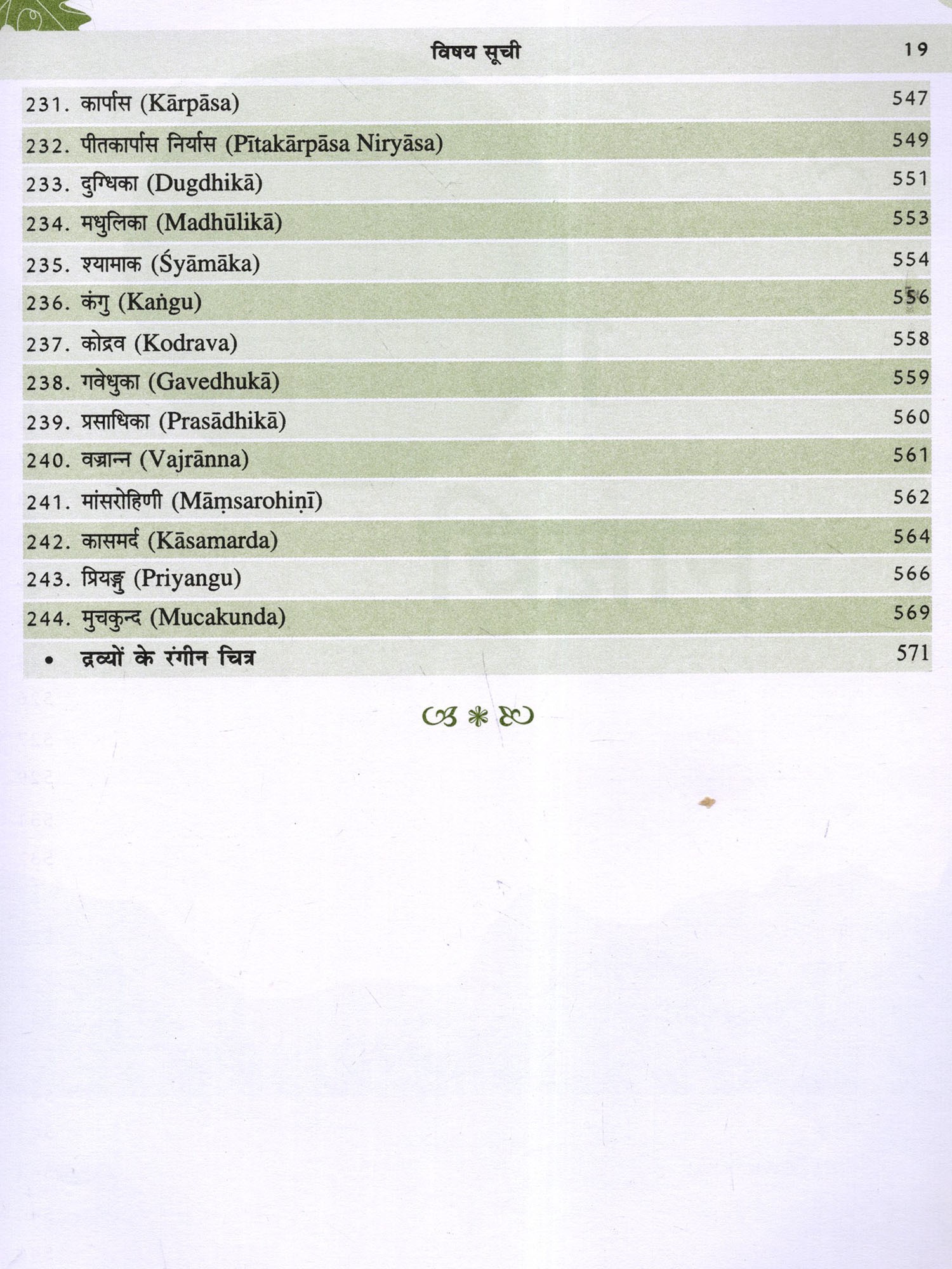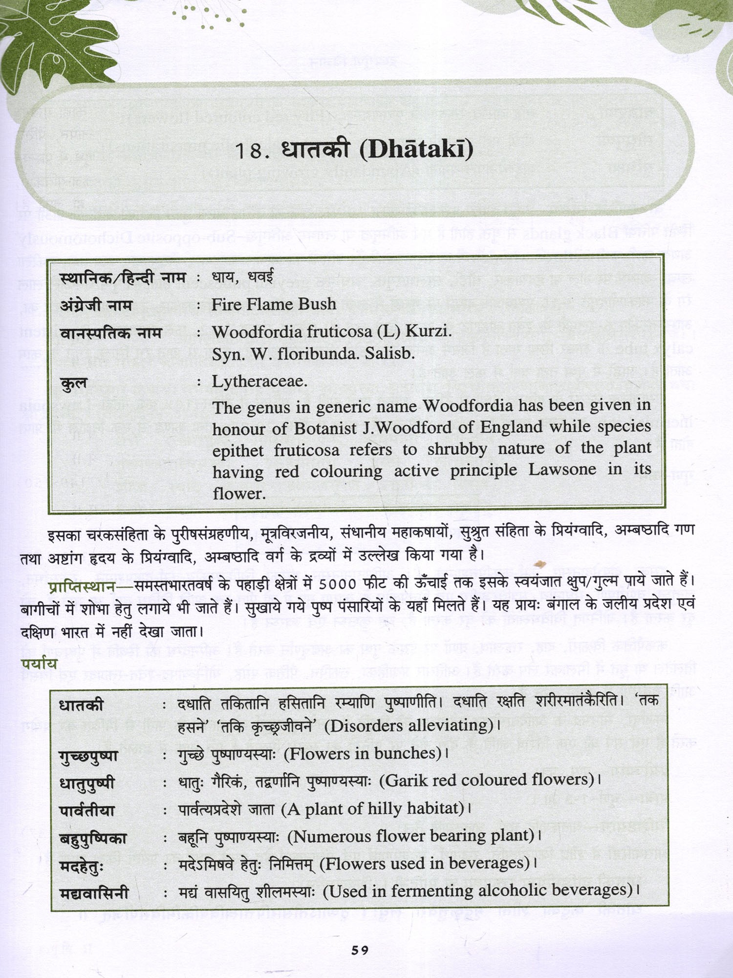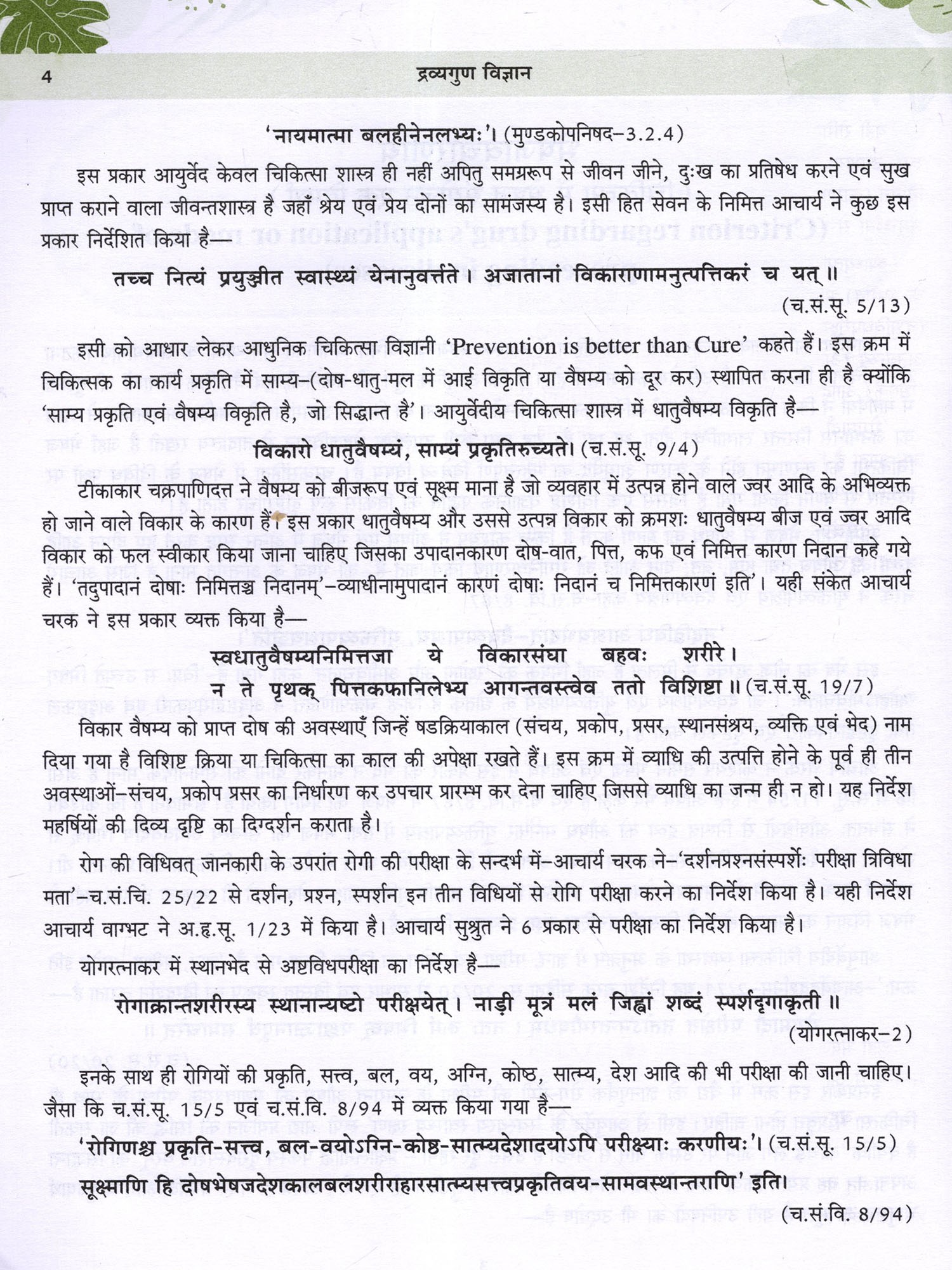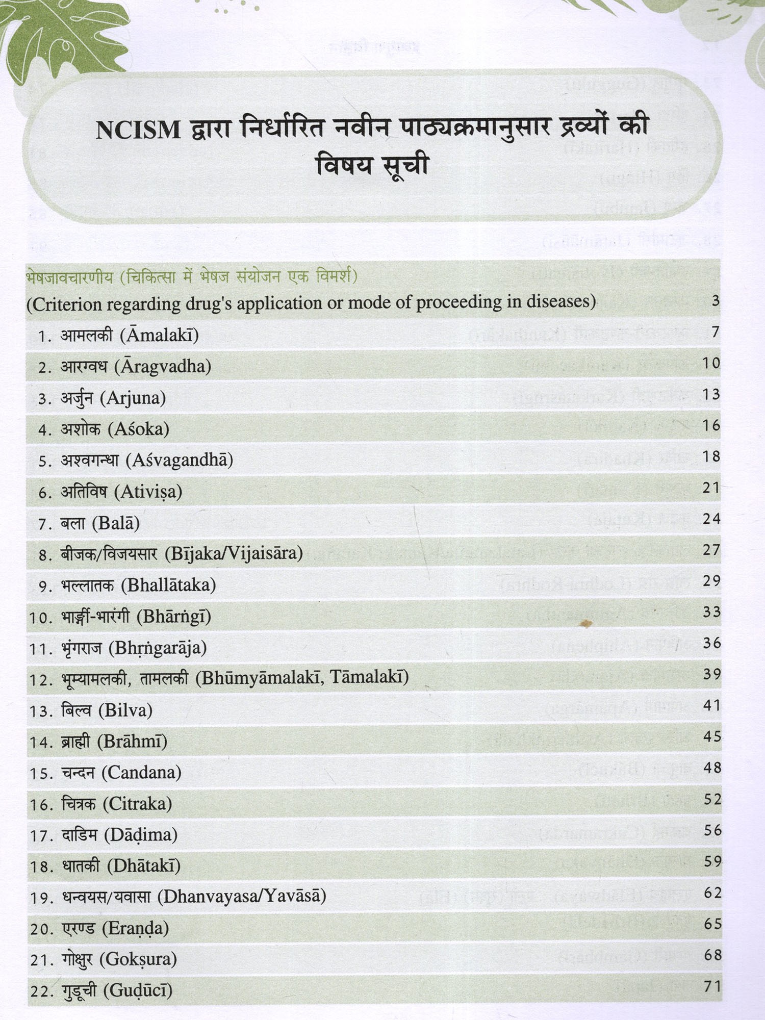 भारतीय वाड्मय के प्राचीनतम स्रोत ऋग्वेद में अनेक (67) औषधियों का उल्लेख किया गया है एवं कालक्रम से मानव द्वारा नये-नये द्रव्यों के प्रयोग से इनकी संख्या में अभिवृद्धि होती आ रही है जिसके परिणास्वरूप शास्त्र में नित नये द्रव्यों का समावेश होता आ रहा है।