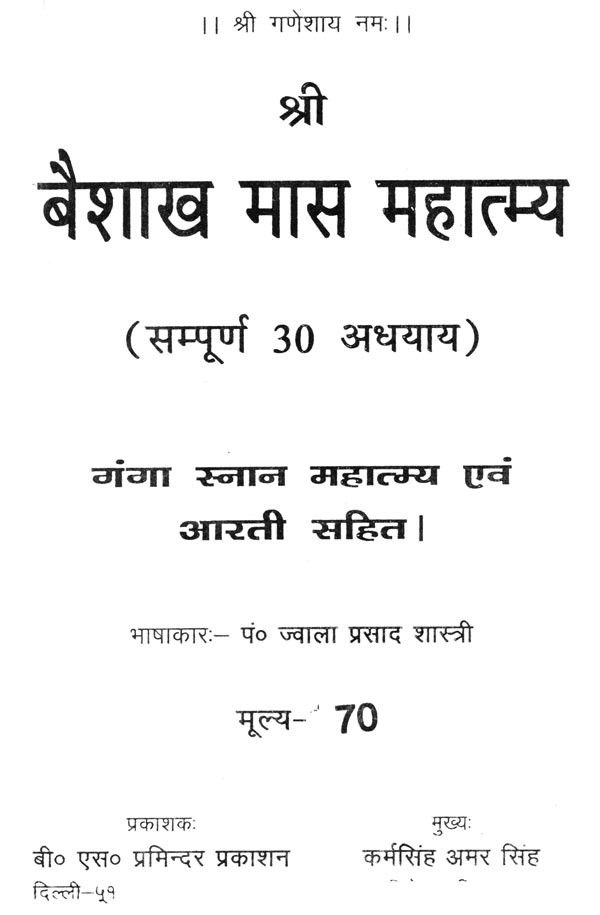 वैसाख महात्म (सम्पूर्ण 30 अध्याय)- Vaisakha Mahatamya (Complete 30 Chapters)