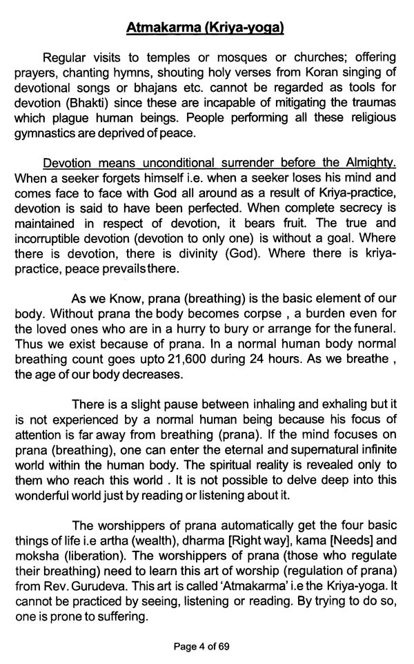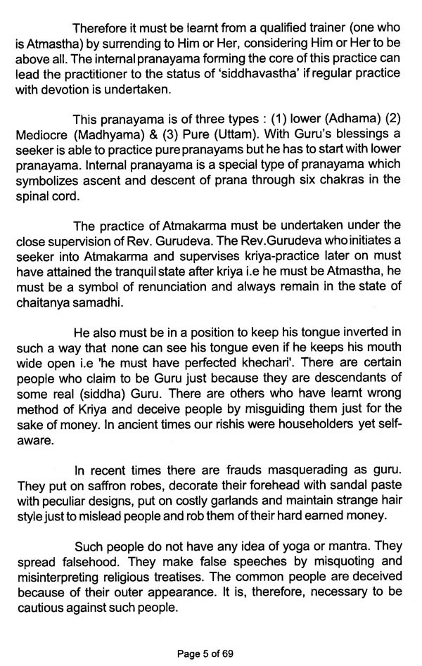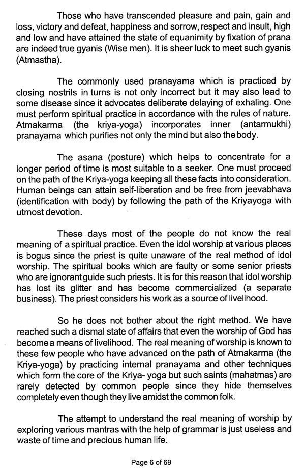 108 Words of Wisdom by Shri Shri Lahiri Mahashaya, has been added in this 2nd Edition from His personal diaries. Hoping & Praying that this words of Lahiri Baba will help the devotees in his/her Sadhana. And may all sincere seekers of God reach at highest level of consciousness, where Mahavtar Babaji, Lahiri Baba, Sri Yukteshwarji, Yoganandaji and all Great Gurus reigns. (Here Point No.12,13,14,15 and 88 is of Khechari Mudra and Talabya Kriya to be noted.)