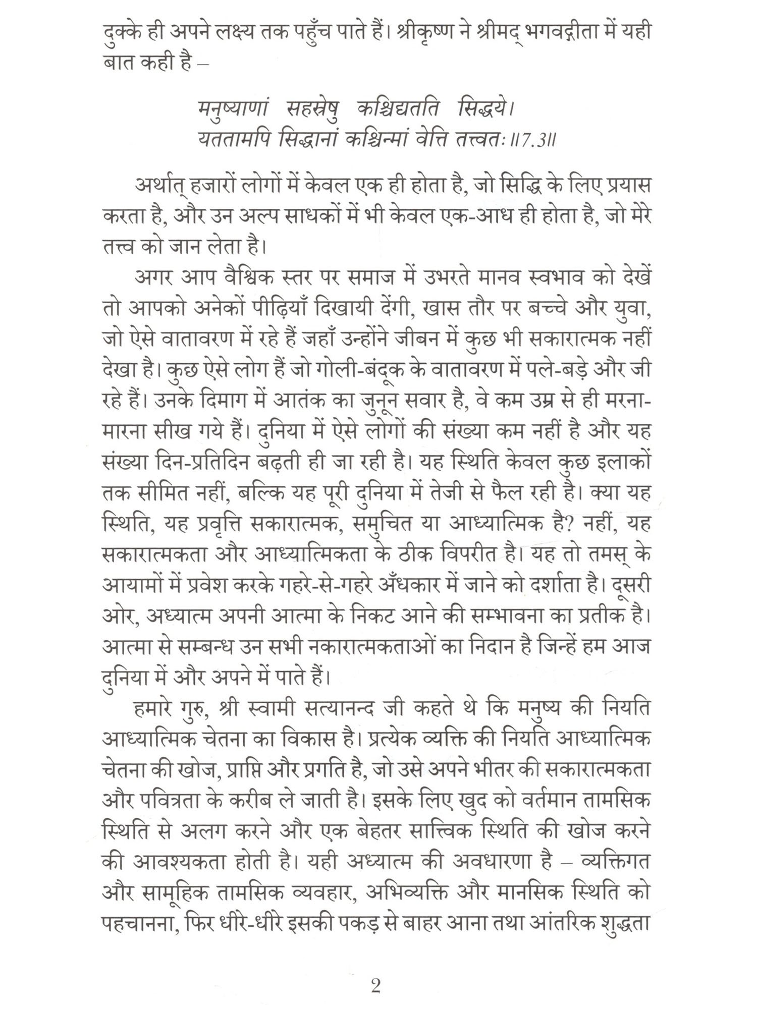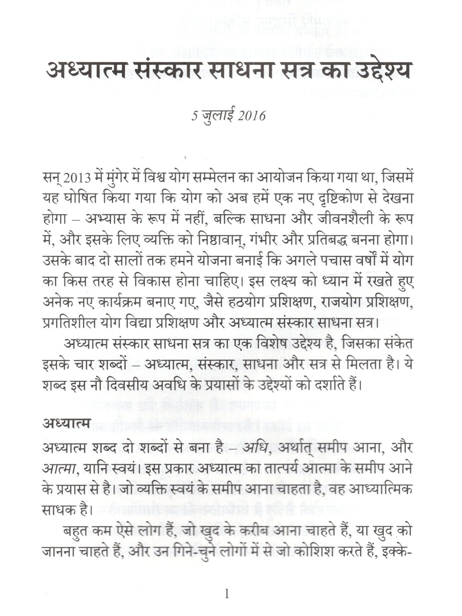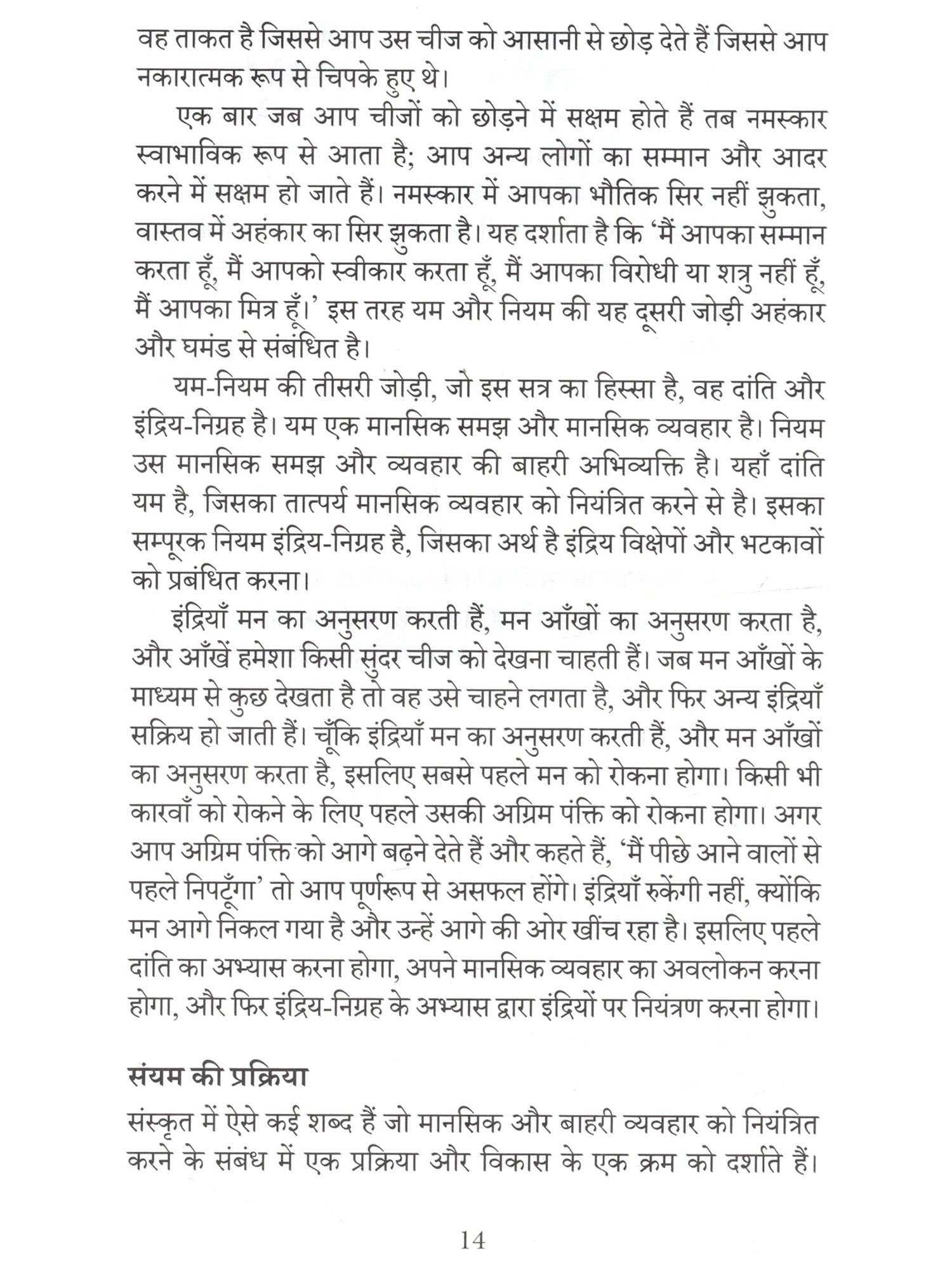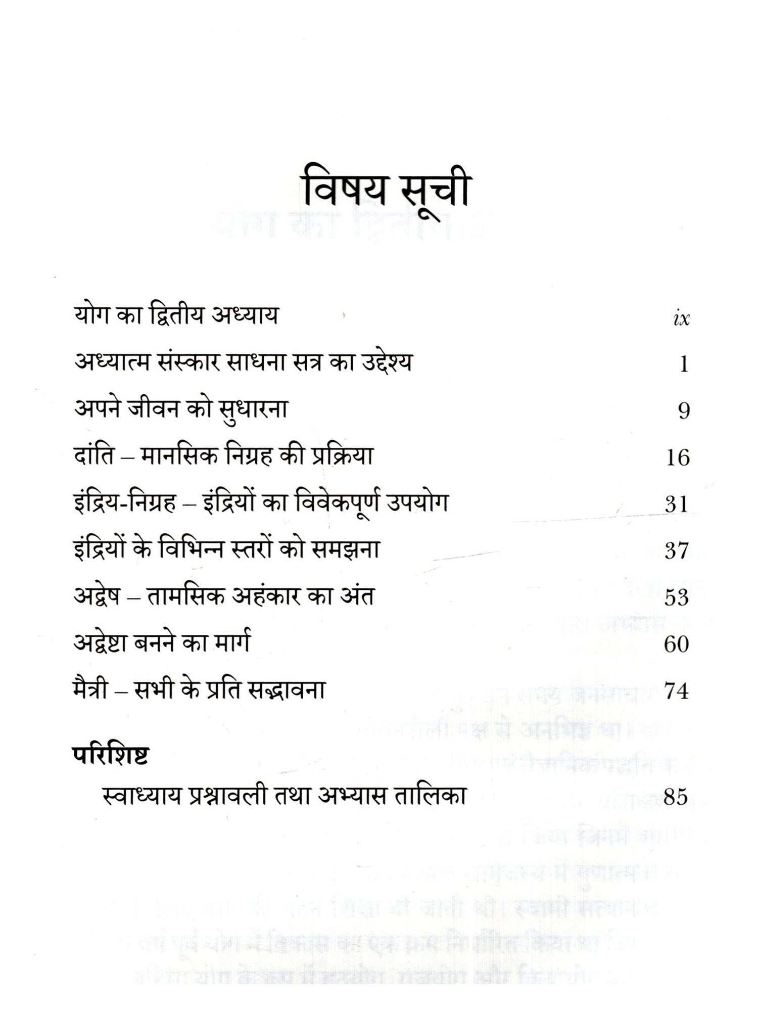 5 से 13 जुलाई 2016 तक गंगा दर्शन विश्व योगपीठ में आयोजित आध्यात्मिक संस्कार साधना सत्र के दौरान स्वामी निरंजनानन्द सरस्वती द्वारा एक सत्संग शृंखला प्रस्तुत की गई। पूर्व में आयोजित आध्यात्मिक संस्कार साधना सत्र के विषय का विस्तार करते हुए स्वामीजी प्रतिभागियों को यमों एवं नियमों के अनुभव की गहराइयों में ले गये। स्वामीजी ने यम-नियम के दो समूहों पर प्रकाश डाला दांति एवं इन्द्रिय-निग्रह तथा अद्वेष एवं मैत्री। स्वामीजी ने इन्हें केवल बौद्धिक सिद्धान्तों के रूप में नहीं समझाया, बल्कि ऐसे व्यावहारिक दिशा-निर्देश प्रदान किये जिनका अनुसरण कर इन सगुणों को वास्तव में जीवन में अनुभव और अभिव्यक्त किया जा सकता है। उन्होंने एक गहन और स्थायी रूपान्तरण का मार्ग प्रशस्त किया है जो निश्चित रूप से व्यक्तिगत स्तर पर संतोष तथा सामूहिक स्तर पर सामंजस्य ला सकता है। साधकों की सुविधा के लिए पुस्तक में यम-नियम सम्बन्धी प्रश्नावलियों एवं अभ्यास तालिकाओं को भी सम्मिलित किया गया है।