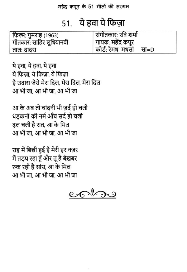 A unique collection of selected 51 songs sung by Mahendra Kapoor along with their voices and rhythm
