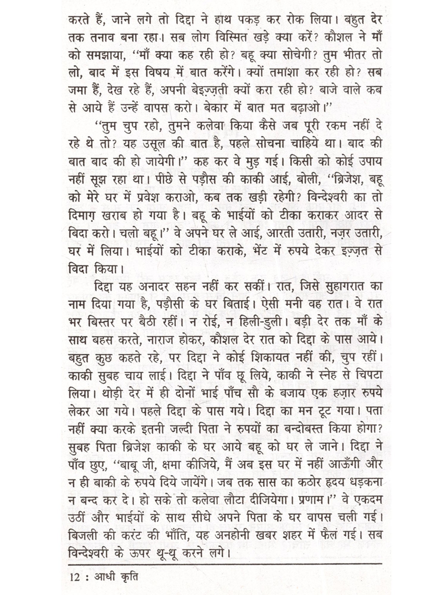 मेरी कहानियों इन्हीं विकृतियों पर आधारित हैं। मैंने प्रयत्न किया है कि समाज व महिलायें कुछ समझदारी से विचार करके कुछ हल निकालें न कि निराश होकर या भयभीत होकर सहन करती रहें। मान-मर्यादा का प्रश्न जब उठता है तब सब लोग सहमत होकर निकालें। मैंने यही मुद्दा उठाया है और अपनी राह चुनने को प्रेरित किया है। गुलामी छोड़ कर अपने व्यक्तित्व को उभारने का प्रयत्न करना चाहिये। नाहक अबला, कमजोर, सहनशील आदि कहना व्यर्थ की बात है। महिलाओं में क्षमता की कमी नहीं है। अपने उद्देश्य व उसूलों पर सही रहकर सामना करना चाहिये। दहेज प्रथा इतनी घिनौनी, शर्मनाक है कि जो माता-पिता अपनी पुत्री को बड़ा करते हैं, पढ़ा-लिखा कर व्यक्तित्व निखारते हैं उनसे दहेज की माँग करना छोटेपन की निशानी है। सारी कमाई वे क्यों दें? पुत्री दे दी उस पर खर्च किया उसकी चिन्ता न होकर माँगना कहाँ तक उचित है। यदि स्वयं में इतनी सामर्थ्य नहीं है तो विवाह करने का कोई हक नहीं बनता। विवाह दो परिवारों का मिलन है न कि गुलामी की जंजीर है।