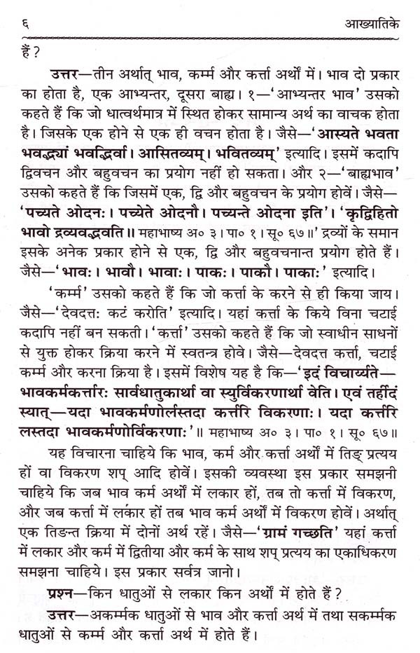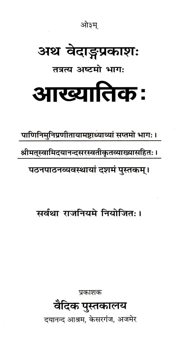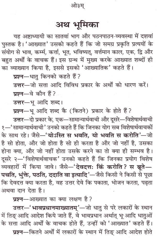 आख्यातिकः Aakhyatikah- With Explanation By Srimat Swami Dayananda Saraswati (The Eighth Part There)