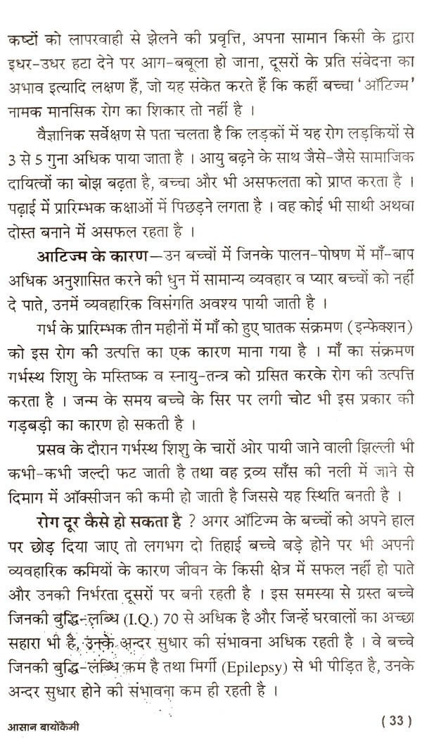 वायोकेमी अत्यंत सरल, सबसे सस्ती और निरापद चिकित्सा पद्धति है। इसमें केवल 12 औषधियाँ होती है। इस पद्धति से चिकित्सा करने वालों को किसी डिग्री डिप्लोमा या मान्यता प्राप्त करने की आवश्यकता भी नहीं है। इस पद्धति की चिकित्सा का यथेष्ट ज्ञान होने पर धड़ल्ले से चिकित्सा की जा सकती है। अपने विषय की अनुपम पुस्तक।