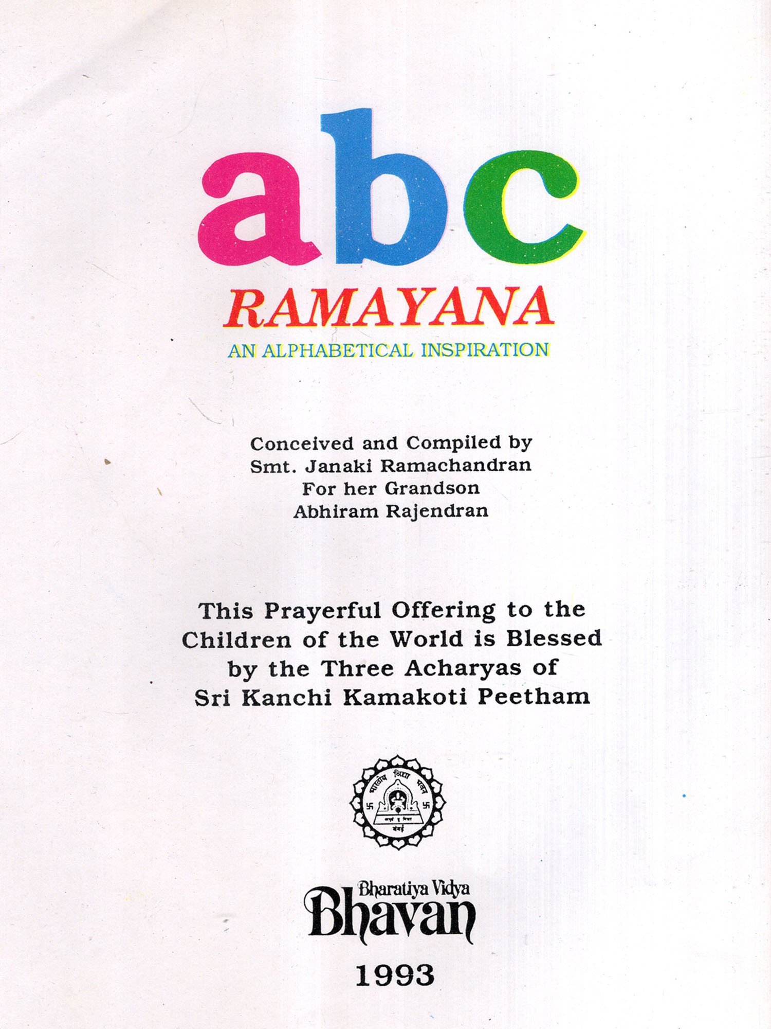 ABC Ramayana- An Alphabetical Inspiration (An Old and Rare Book)