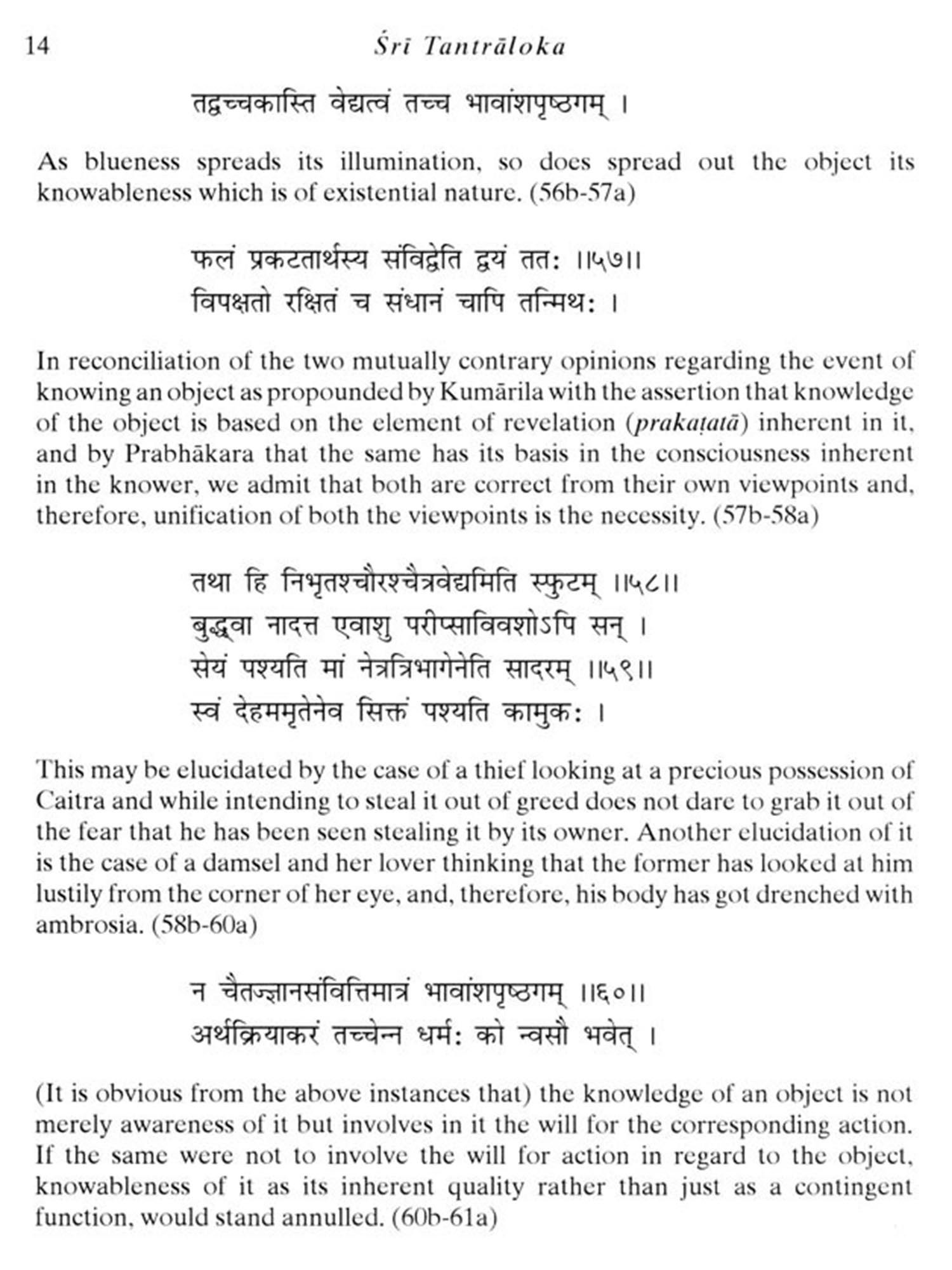Remarkably enough, this suggestion of the Vedic seer seems to have found out its best recipient in Abhinavagupta and that also in the form of his Tantraloka, as the epitome of wisdom screened out of the Tantras coming out of the mouth of Siva by way of response to the queries of his consort, the Goddess, an embodiment of His own creativity. Very many of the Tantras whose essence has been absorbed in the Tantraloka have disappeared by this time owing to convulsions of history to be not available to us today. On this account, the Tantraloka become all the more important for the humanity as it has embodied in it the invaluable wisdom contained in them by such a genius par excellence as Abhinavagupta, a yogin, tantrika, psychologist, philosopher and aesthetician all combined in him together.