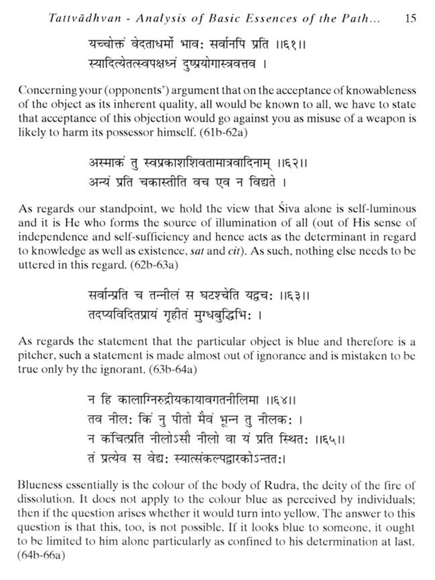 To the best of my knowledge the present is the first complete English translation of this colossal work rendered by the combined efforts of Professor Satya Prakash Singh and Swami Maheshvarananda with their years of practice of yoga and tantra, philosophy Eastern and Western, psychology Freudian and Jungian, Sanskrit and English. This is evident from dozens of their publications and papers ranging over areas like yoga, history and culture on A.N. Whitehead, C.G. Jung. Veda and the history of yoga, linguistics and many more. It was by virtue of deep understanding that an English translation of such a massive work as the Tantraloka could be accomplished lucidly by these scholars after a lapse of almost a millennium from the time of Abhinavagupta himself. But for Tantraloka, the disciplines of Yoga and Tantra would have remained only a dream in its relationship to philosophy and yoga. Tantraloka, indeed, by virtue of its wide and integrative attempt, would have been lost for ever to the modern world getting diminished to the state of a mere cult instead of opening the doors to the mystery of human psychology and physiology.