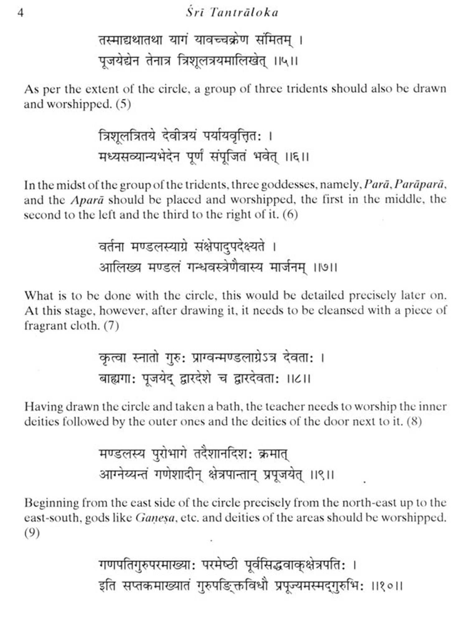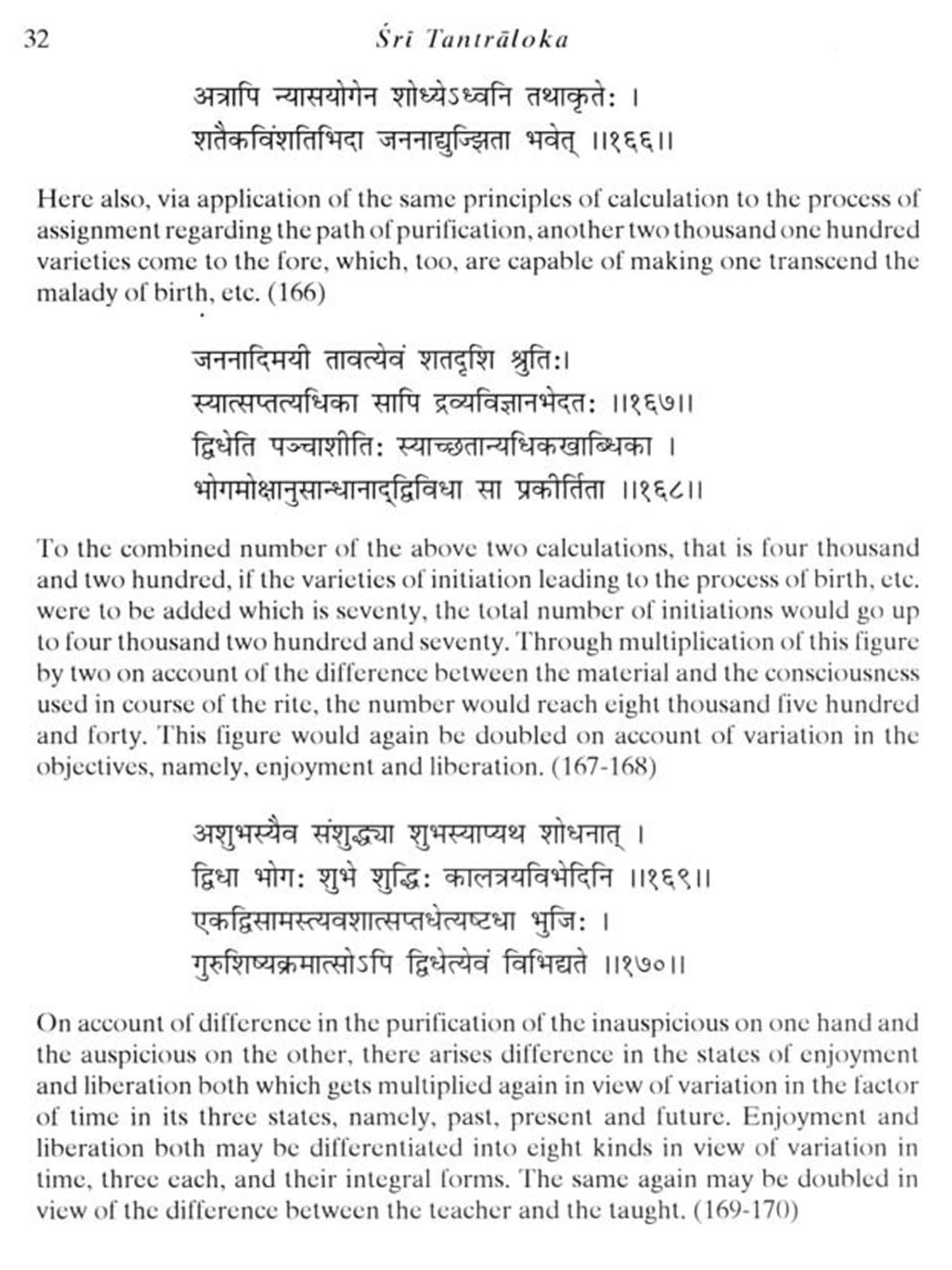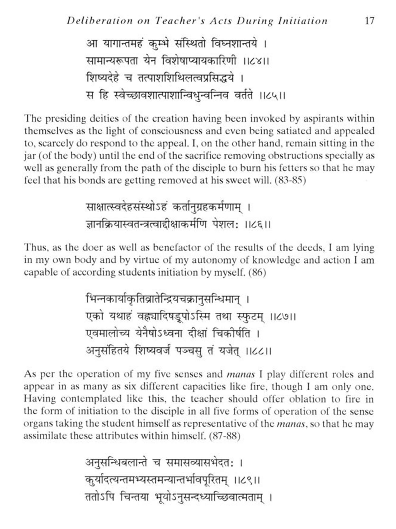 To the best of my knowledge the present is the first complete English translation of this colossal work rendered by the combined efforts of Professor Satya Prakash Singh and Swami Maheshvarananda with their years of practice of yoga and tantra, philosophy Eastern and Western, psychology Freudian and Jungian, Sanskrit and English. This is evident from dozens of their publications and papers ranging over areas like yoga, history and culture on A.N. Whitehead, C.G. Jung. Veda and the history of yoga, linguistics and many more. It was by virtue of deep understanding that an English translation of such a massive work as the Tantraloka could be accomplished lucidly by these scholars after a lapse of almost a millennium from the time of Abhinavagupta himself. But for Tantraloka, the disciplines of Yoga and Tantra would have remained only a dream in its relationship to philosophy and yoga. Tantraloka, indeed, by virtue of its wide and integrative attempt, would have been lost for ever to the modern world getting diminished to the state of a mere cult instead of opening the doors to the mystery of human psychology and physiology.