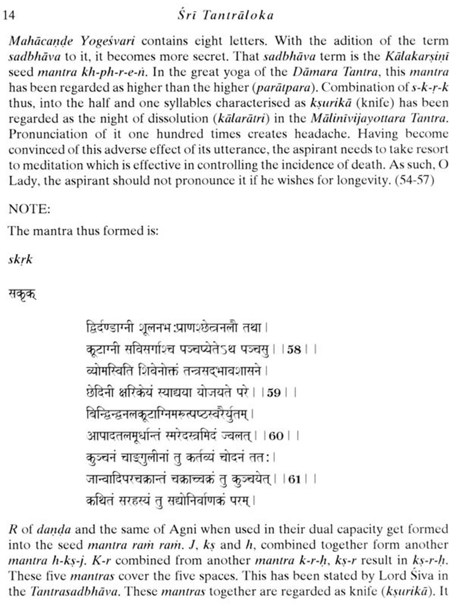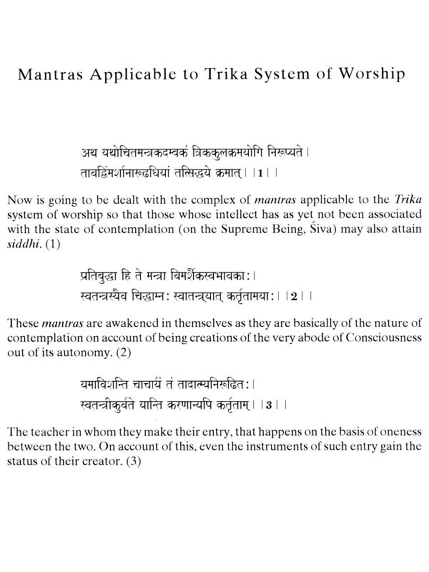 I warmlycongratulate Professor Satya Prakash SinghandSwami Maheshvarananda for undertaking the massive task of translating Abhinavagupta's Tantraloka and other minor works into English. Partial translations are available but, to the best of my knowledge, this is the first time that the entire corpus of Tantraloka is being presented in the original Sanskrit and a lucid English translation, I pay my homage to the great Acarya Abhinavagupta, May Param Śiva bestow His blessings on us all, and thereby redeem mankind from the strife and violence that is plaguing the world. Aum Namah Sivaya.