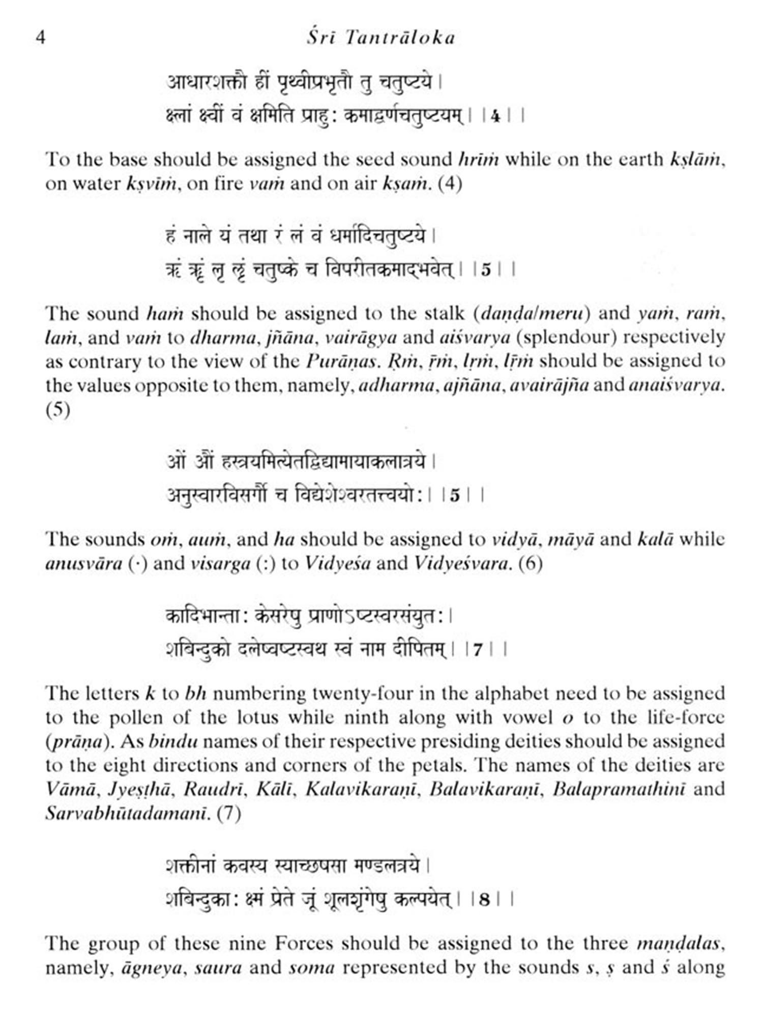 To the best of my knowledge the present is the first complete English translation of this colossal work rendered by the combined efforts of Professor Satya Prakash Singh and Swami Maheshvarananda with their years of practice of yoga and tantra, philosophy Eastern and Western, psychology Freudian and Jungian, Sanskrit and English. This is evident from dozens of their publications and papers ranging over areas like yoga, history and culture on A.N. Whitehead, C.G. Jung. Veda and the history of yoga, linguistics and many more. It was by virtue of deep understanding that an English translation of such a massive work as the Tantraloka could be accomplished lucidly by these scholars after a lapse of almost a millennium from the time of Abhinavagupta himself. But for Tantraloka, the disciplines of Yoga and Tantra would have remained only a dream in its relationship to philosophy and yoga. Tantraloka, indeed, by virtue of its wide and integrative attempt, would have been lost for ever to the modern world getting diminished to the state of a mere cult instead of opening the doors to the mystery of human psychology and physiology.