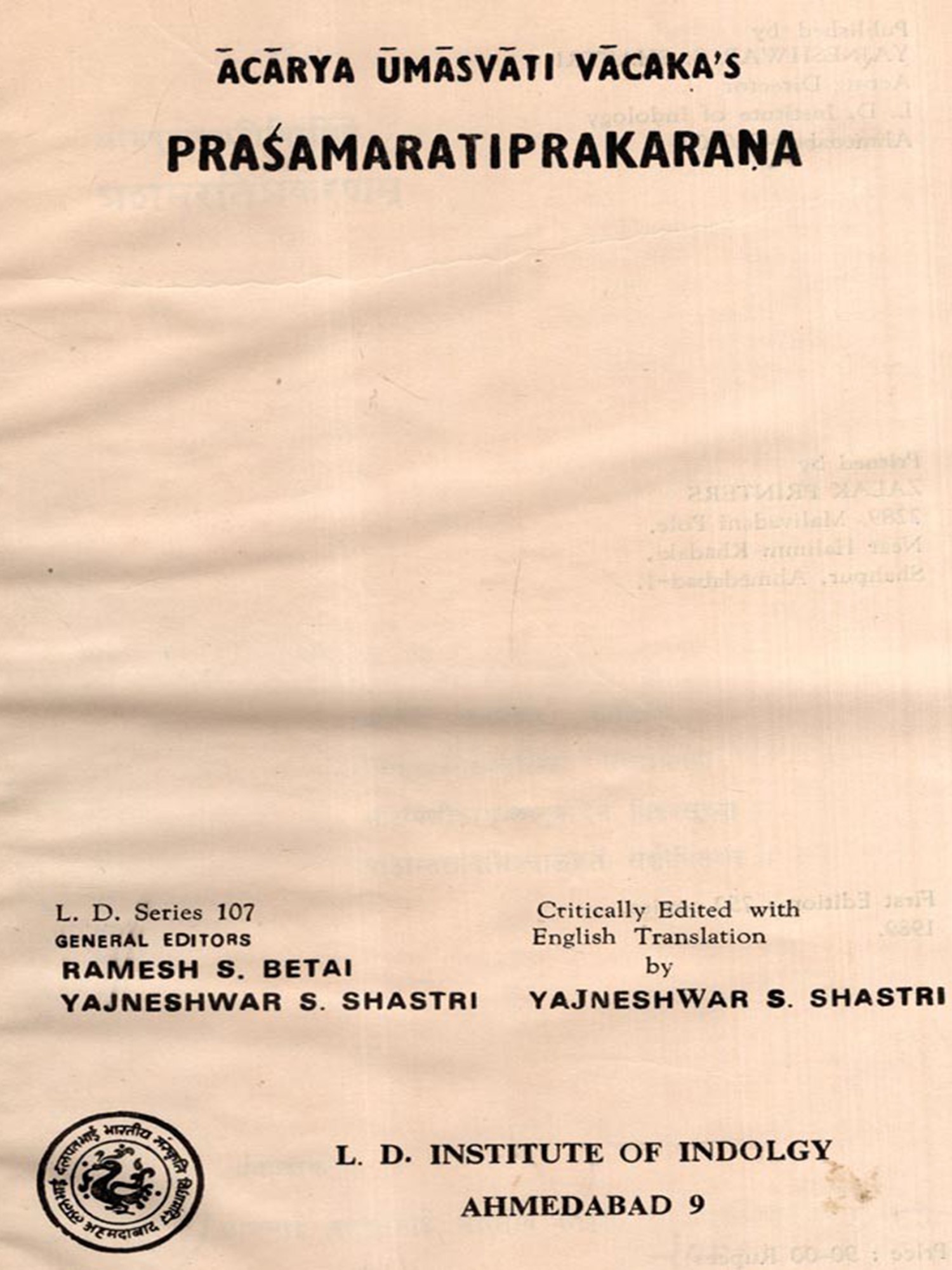 प्रशमरतिप्रकरणम्: Acarya Umasvati Vacaka's- Prasamaratiprakarana (An Old and Rare Book)
