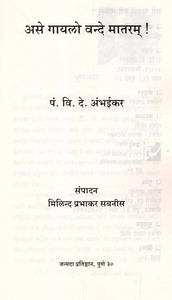 Vande Mataram Down the Memory Lane (An Old and Rare Book)