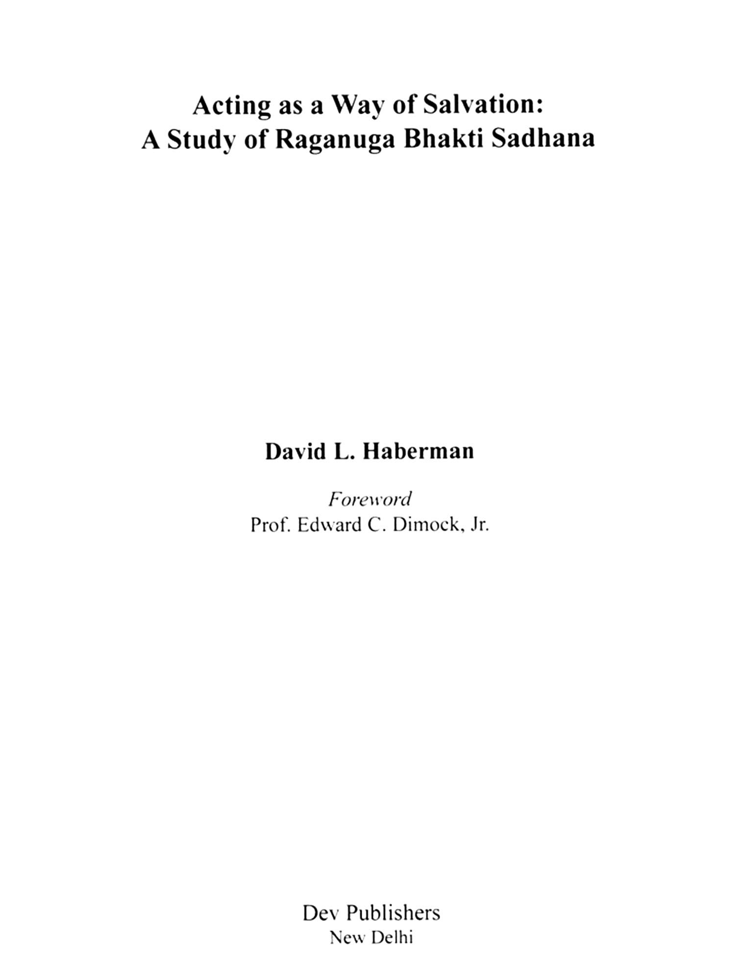 Sixteenth-century Hindu theologian Rupa Gosvamin established a technique by which, in imitating one of the significant figures in Krishna's dramatic world, a devotee might actually come to inhabit the world of the character whose part he or she was playing. Haberman here demonstrates that the Hindu view of reality accepts such role playing, called raganuga bhakti sadhana, as a preeminent way to salvation. He argues that Hindu devotional religion is not entirely a religion of grace, as many scholars have held, but one which requires discipline and effort. Throughout the book, Haberman explores Indian dramatic theory, Rupa's unique application of that theory to devotionalism, developments in the practice of this technique, and its contemporary manifestations.