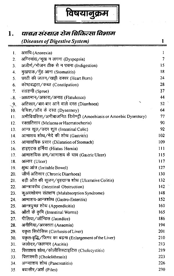 1. पाचन संस्थान रोग विभाग- इसमें आमाशय और आत्र सम्बन्धी तथा इनसे सम्बन्धित अंगों के तमाम रोगों से वर्णन एवं उनकी पेटेन्ट चिकित्सा अनुभूत प्रेस्क्रिप्शन सहित दी गई है,