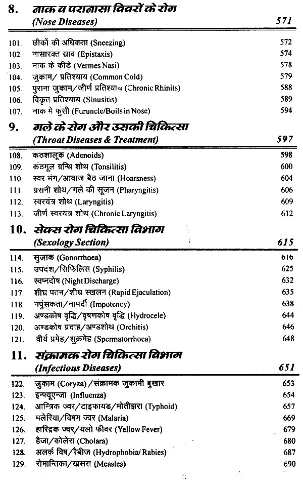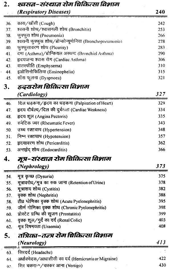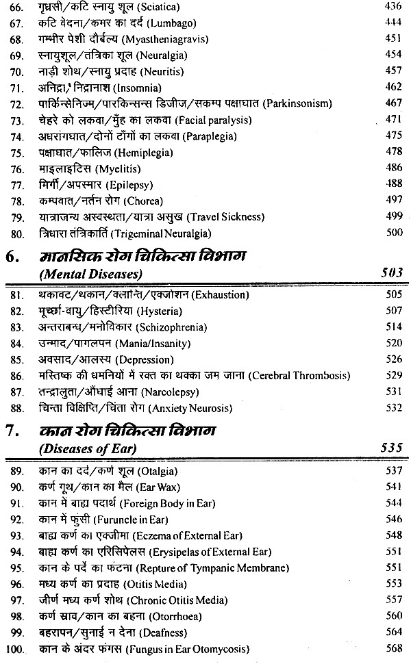 5. तंत्रिका तंत्र रोग चिकित्सा विभाग (Neurology)- इसमें नर्वस सिस्टम के तमाम रोगों का स्पष्ट वर्णन एवं चिकित्सा मेडिकल प्रेस्क्रिप्शन सहित दी गई है।