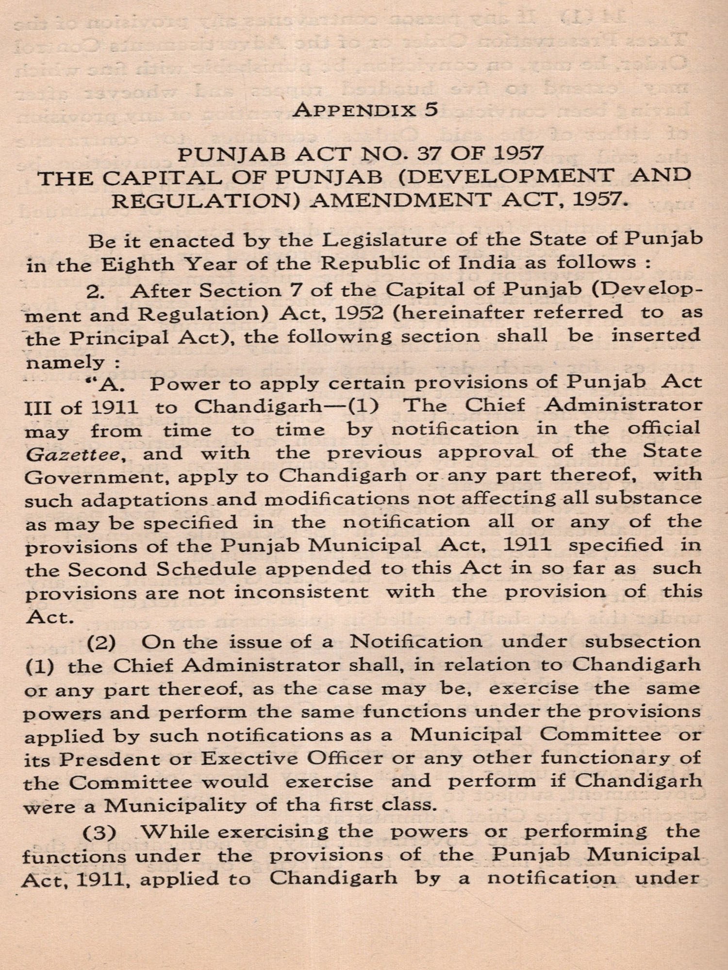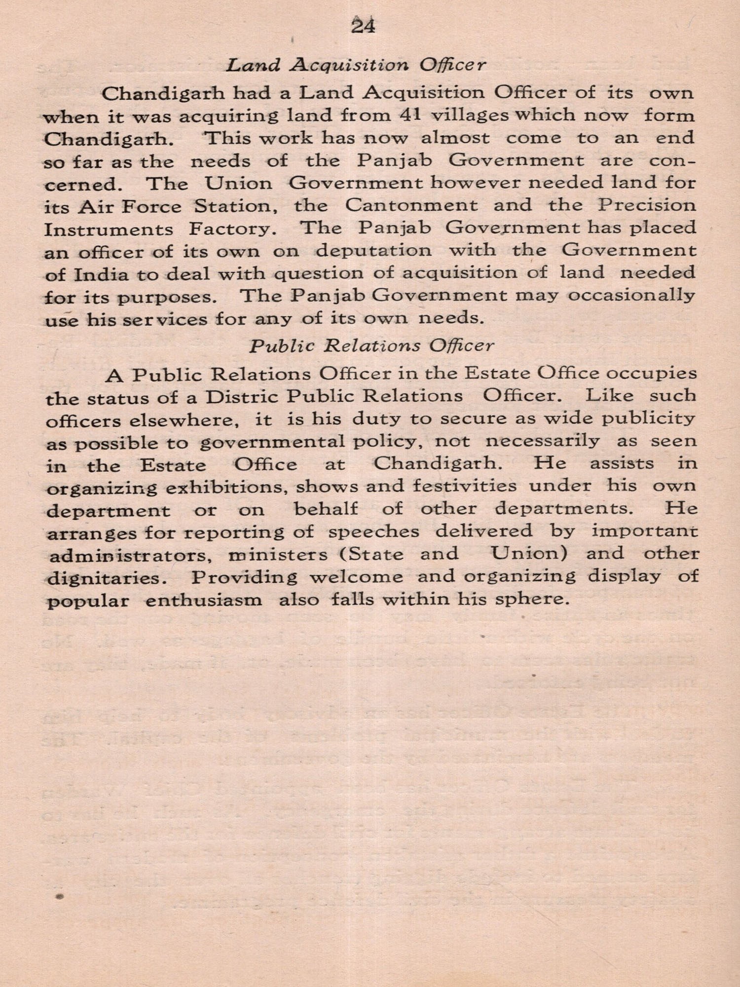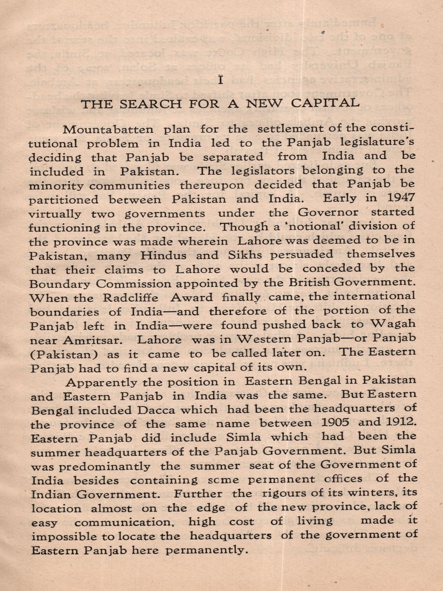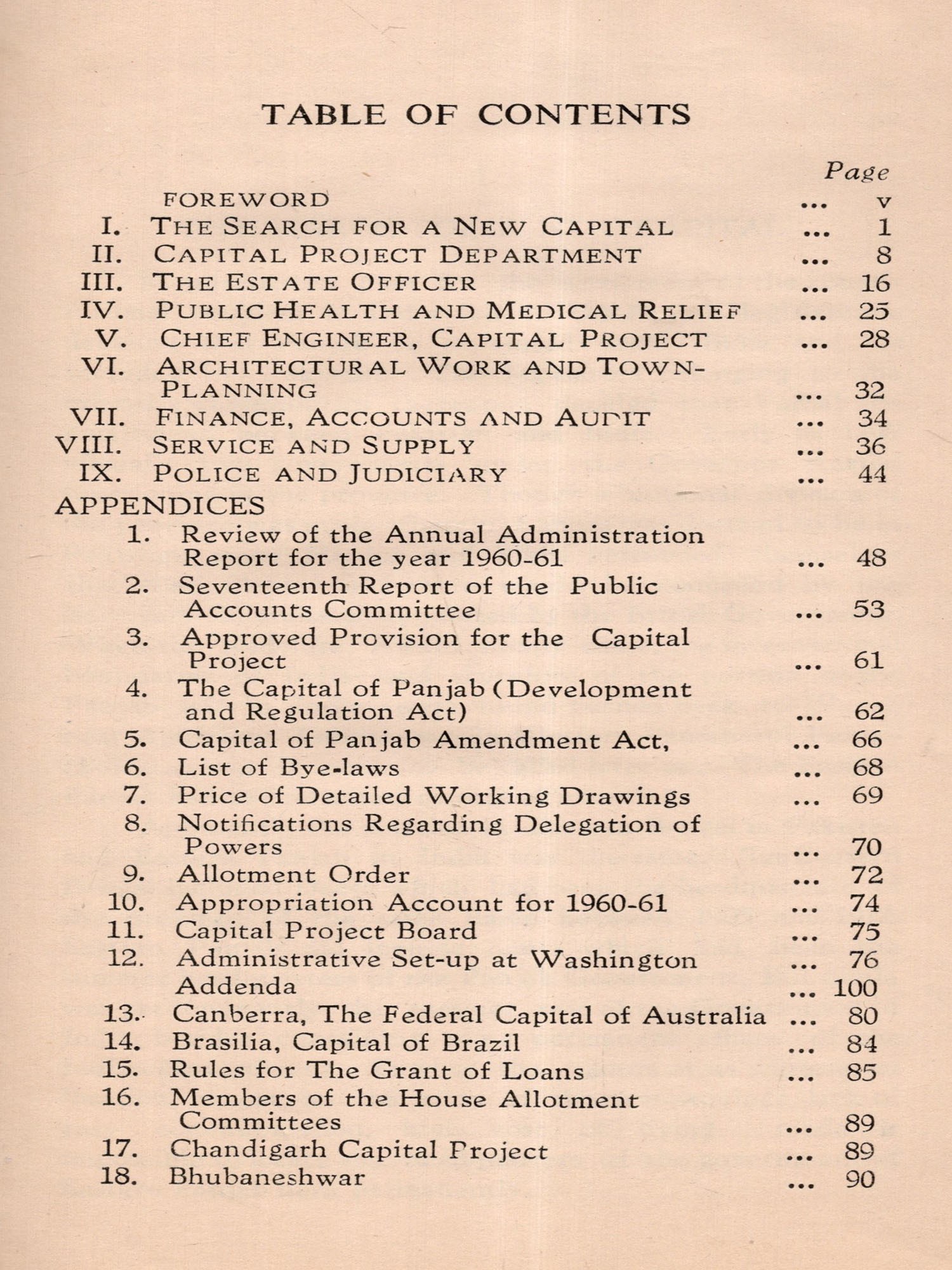 The following pages describe the administrative set-up Four at Chandigarh, the newly built capital of Panjab. appendices describe briefly the administration at four other capital cities elsewhere, Washington (U.S.A.), Canberra (Australia), Brasilia (Brazil) and Bhubaneshwar (Orissa). Though the study was sponsored by the Panjab Branch of the Indian Institute of Public Administration, neither the Panjab Branch nor the I. I. P. A. is responsible for the views expressed in the survey. The Director of the survey is alone responsible for them.