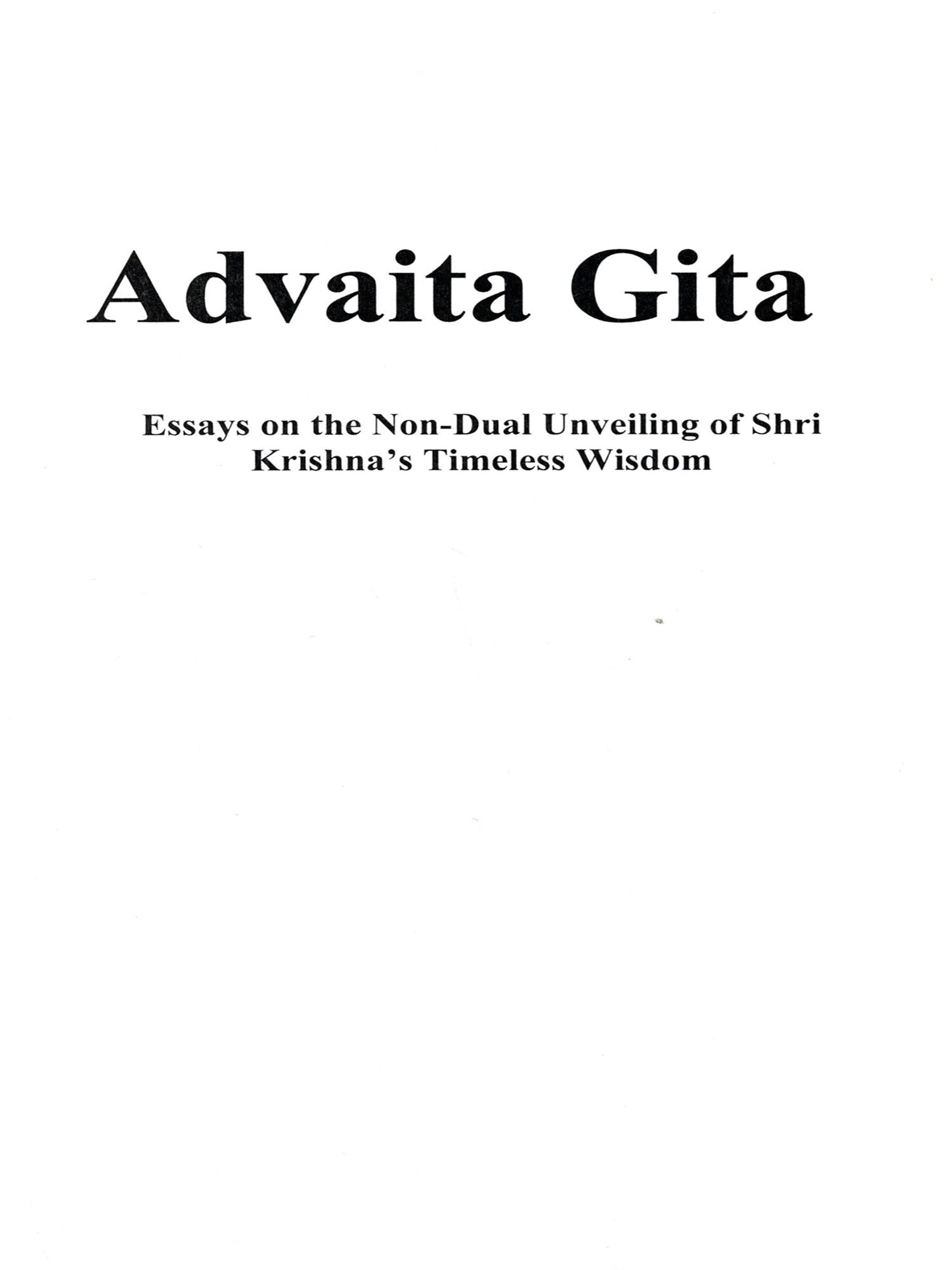 The Advaita Gita (Bhagavad Gita and Non-Dualism) invites you into a transformative dialogue between the eternal soul and the seeking heart, inspired by the timeless conversation between Shri and Arjuna on the battlefield of Kurukshetra. To guide you through this sacred text, I have chosen a hybrid structure, blending my interpretive essays with the Bhagavad Gita's 18 chapters, along with simple English translations. This format is organised into three thematic sections Foundations of the Dialogue (Chapters 1-6), Paths to Liberation (Chapters 7-12), and Synthesis and Surrender (Chapters 13-18)each pairing an essay with its corresponding Gita chapter. This approach echoes the Gita's rhythm, where Shri Krishna's wisdom unfolds gradually, addressing Arjuna's doubts and guiding him towards non-dual realisation. By combining my reflections with the original text, I aim to create a seamless connection between the Gita's ancient teachings and their relevance to your inner journey, providing both insight and inspiration.