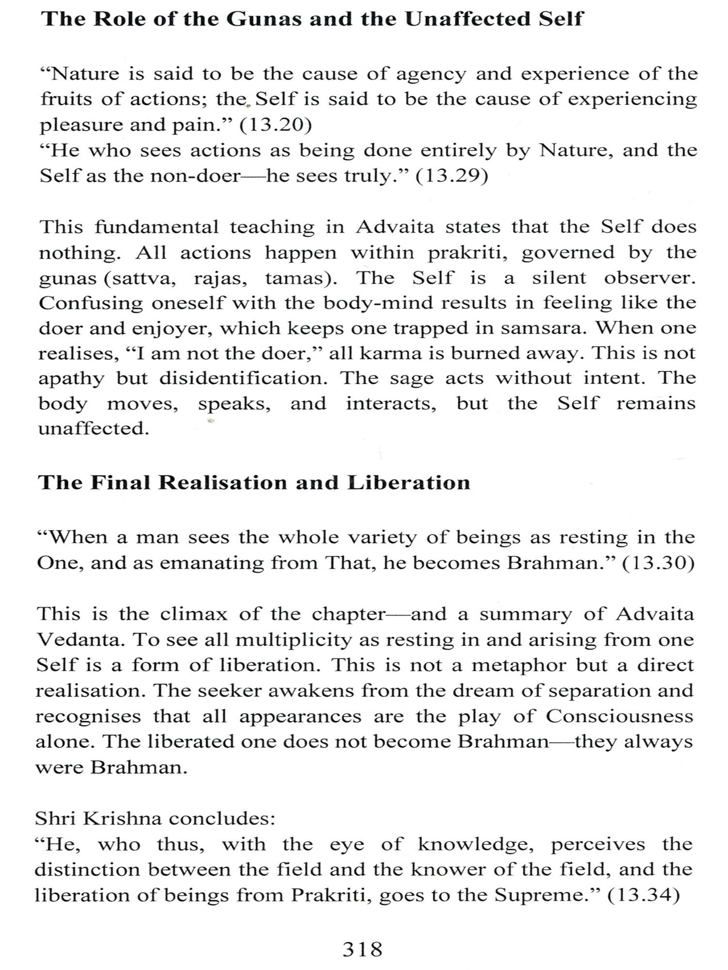 This format also fosters a dynamic reading experience, striking a balance between personal interpretation and the Gita's universal truths. The essays provide a lens for exploring non-dualism, drawing parallels between the Gita's teachings and the idea that our true self (Atman) is one with the ultimate reality (Brahman). By presenting the Sanskrit text alongside simple translations, I honour the Gita's sacred origins while making its wisdom approachable. This structure encourages you to move fluidly between reflection and scripture, deepening your understanding of how non-dual principles can guide daily life. Whether you seek philosophical insight, spiritual growth, or practical wisdom, this book is designed to speak to both your heart and soul, guiding you toward a deeper connection with the divine within.
