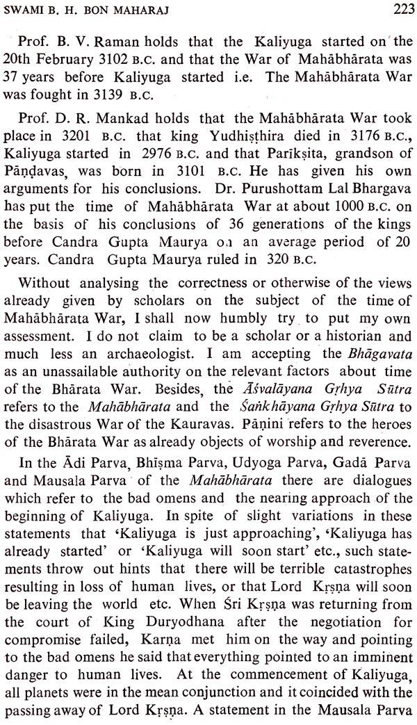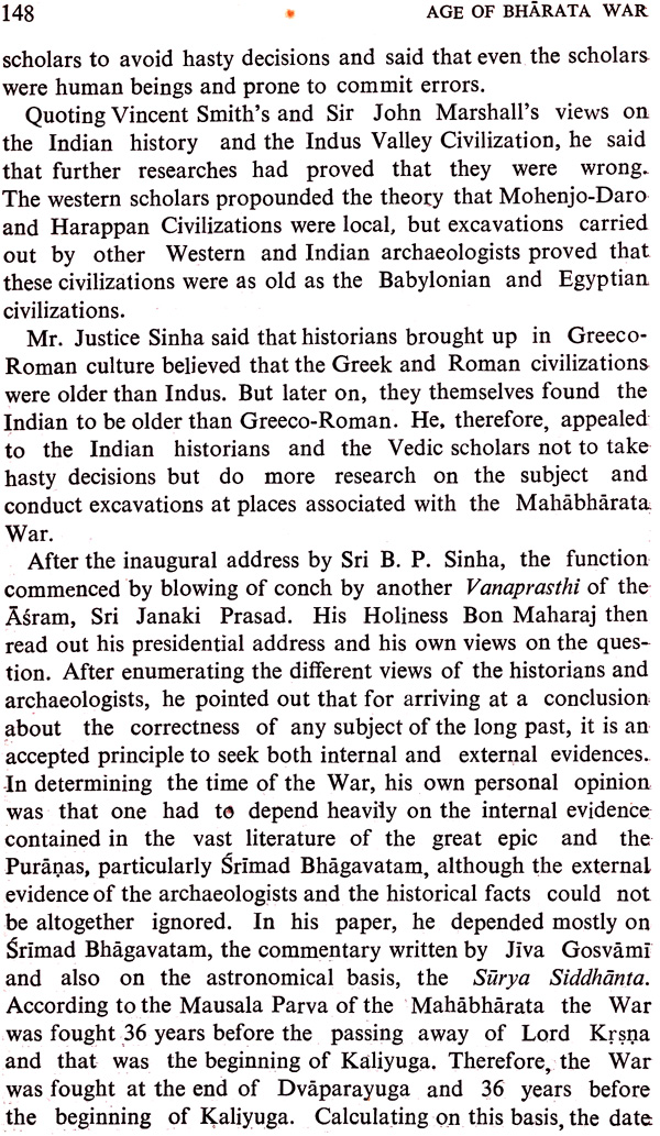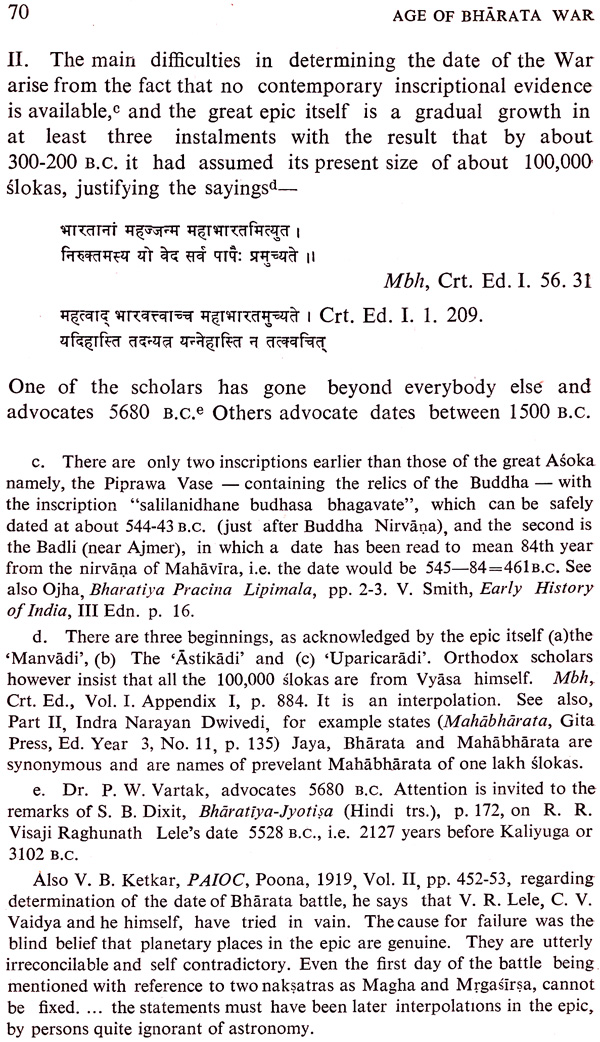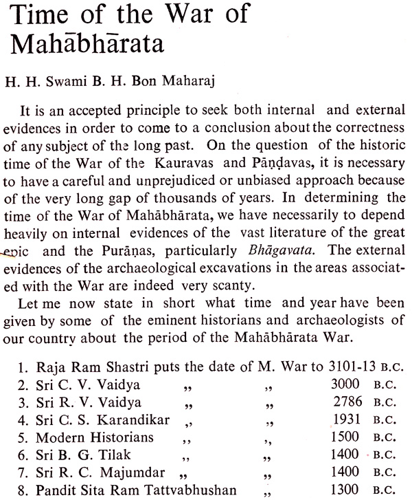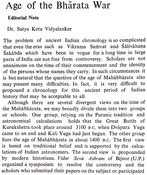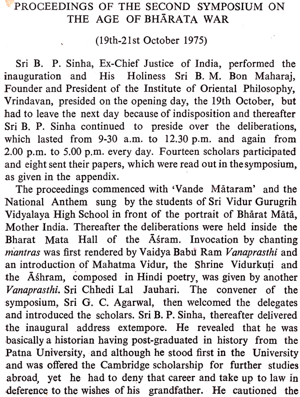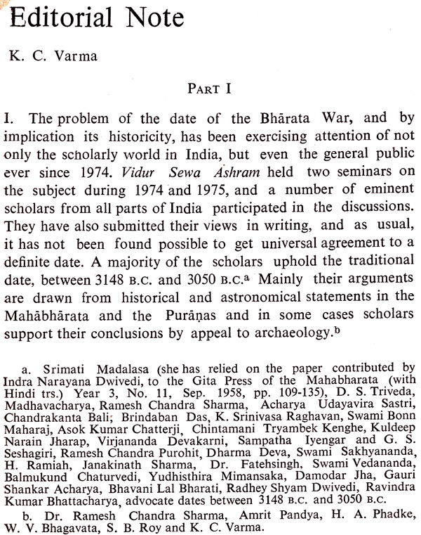 In this collection of papers on this subject of great importance to Hindu thoughts and sentiments, the scholars who participated in the symposia have brought out some very interesting points, However, much more work and investigations would still be required before the date of that great war can satisfactorily be established.