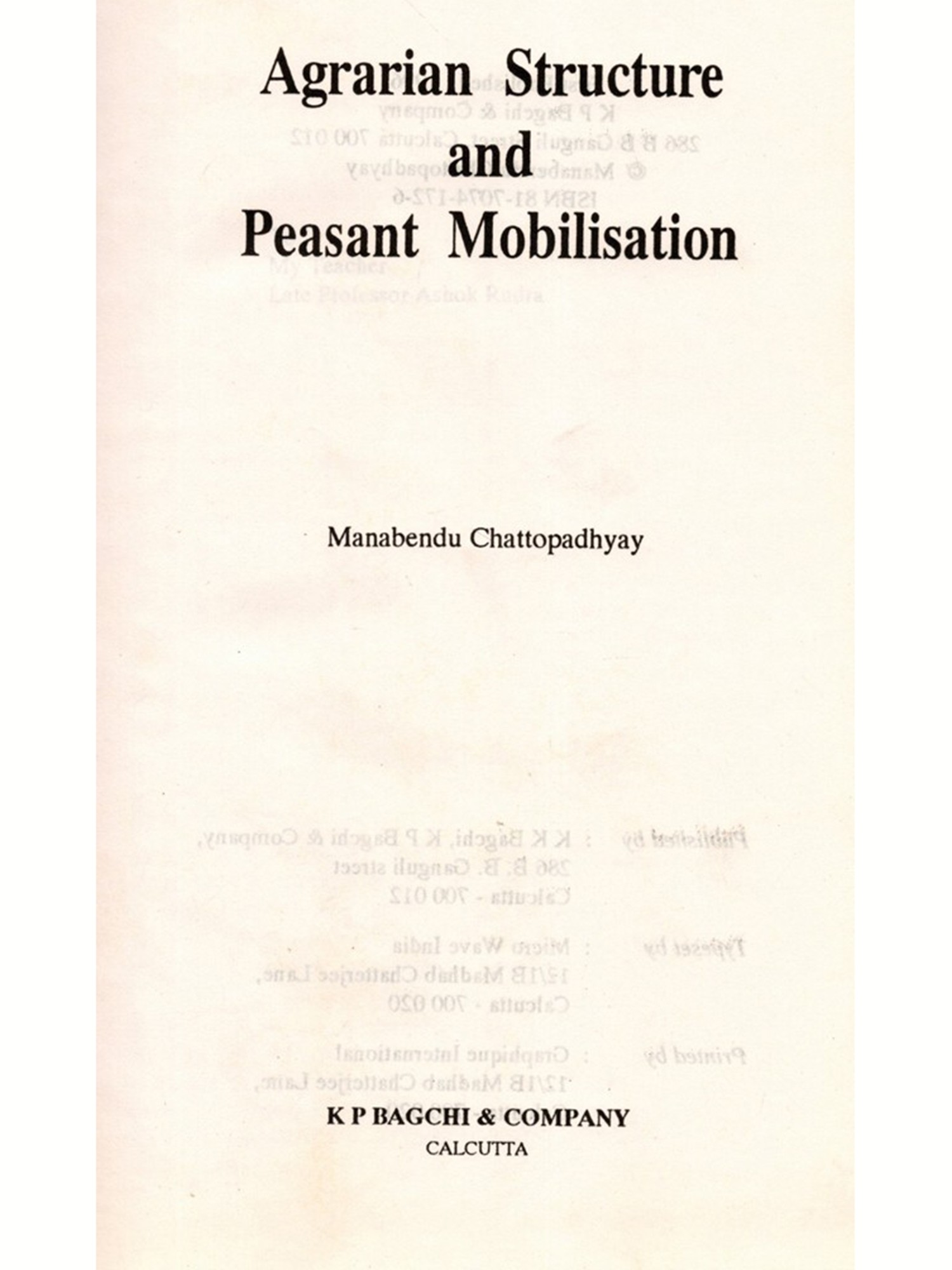 Agrarian Structure and Peasant Mobilisation (An Old and Rare Book)