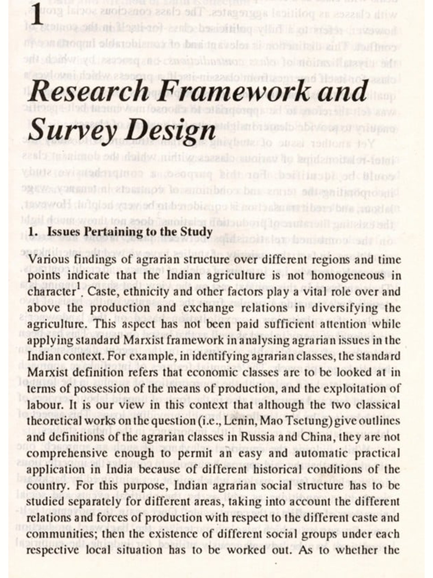 It was Professor Partha Nath Mukherji who first mooted the idea of a socio-economic survey in an area where large scale peasant mobilisations and revolt occurred, known as "The Naxalbari Movement", roughly two decades ago. The basic purpose of this project was to study the structure and change in the agrarian social systems keeping in view the dimensions of agrarian mobilisations and conflicts. The theoretical considerations in mind were that the structure of exploitation, discrimination and oppression within which rural poor is situated generate their own contradictions which can lead to a variety of agrarian and other conflicts. Such conflicts are of crucial significance in comprehending the agrarian relations vis-a-vis the crystallization of agrarian classes.