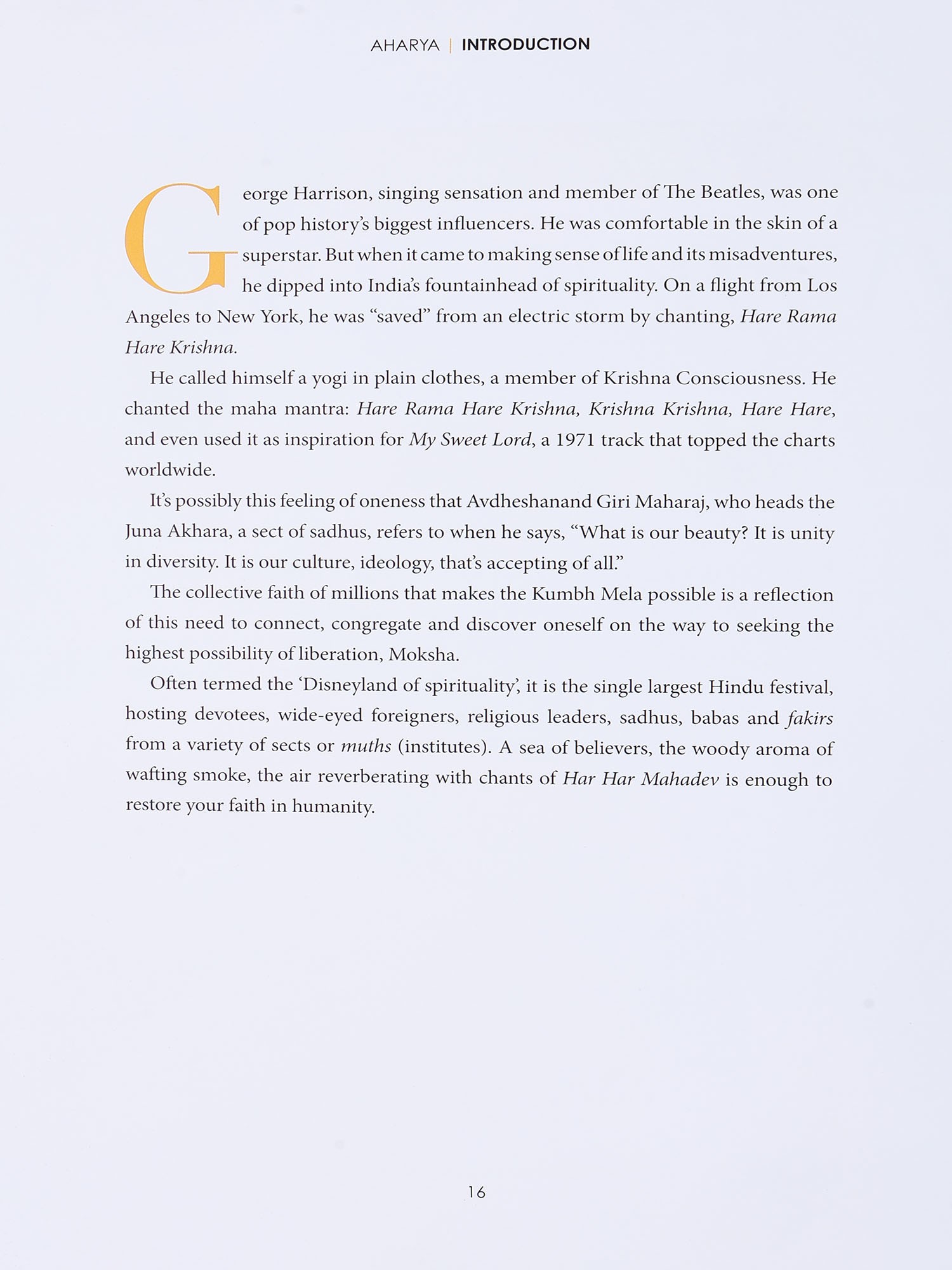 George Harrison, singing sensation and member of The Beatles, was one of pop history's biggest influencers. He was comfortable in the skin of a superstar. But when it came to making sense of life and its misadventures. he dipped into India's fountainhead of spirituality. On a flight from Los Angeles to New York, he was "saved from an electric storm by chanting, Hare Rama Hare Krishna.
