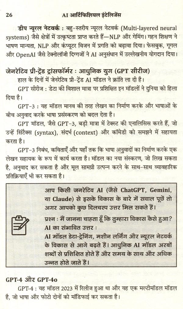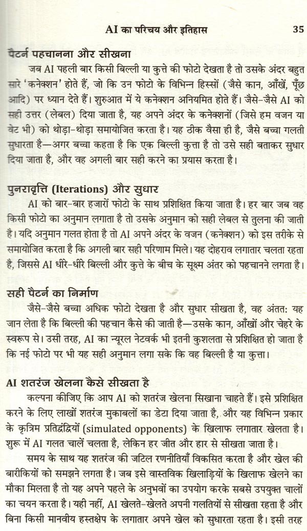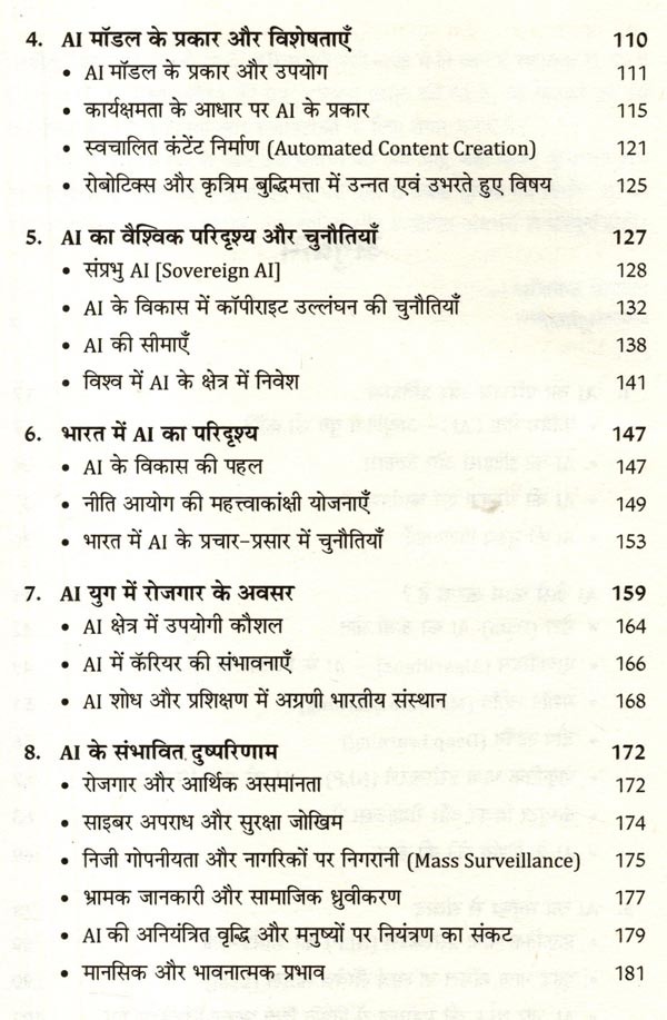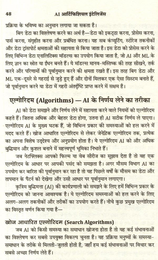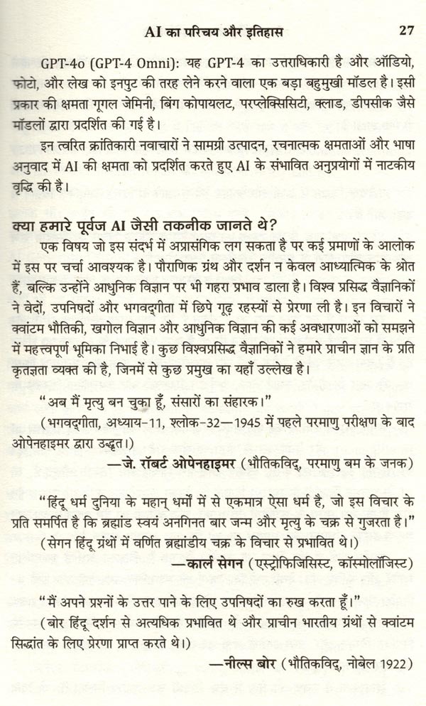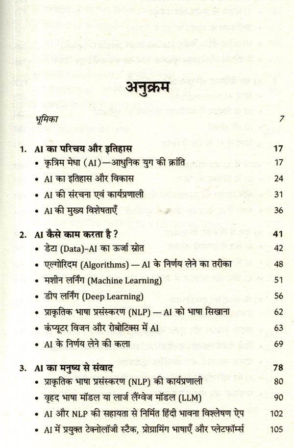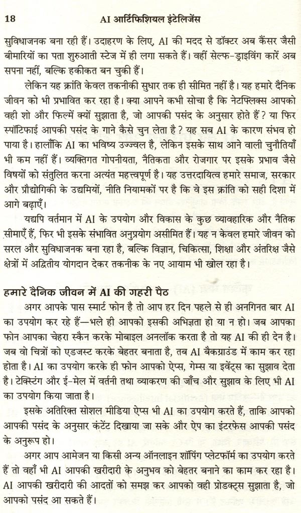 नुष्य ने जब पहली बार आग जलाई थी, तब उसने प्रकृति की एक प्रचंड अप्रयुक्त म शक्ति को साधने की दिशा में पहला कदम बढ़ाया था। तब से लेकर आज तक विज्ञान और तकनीकी विकास की यात्रा ने मानव सभ्यता को असंभव लगने वाली ऊँचाइयों तक पहुँचाया है। इस यात्रा में पहिया, बिजली, टेलीफोन, कंप्यूटर, और इंटरनेट जैसे अनगिनत आविष्कारों ने समाज को बदलकर रख दिया, लेकिन अब हम जिस तकनीकी क्रांति के द्वार पर खड़े हैं, वह पूर्व की सभी क्रांतियों से कहीं अधिक व्यापक और परिवर्तनकारक है। यह क्रांति है- कृत्रिम मेथा (Artificial Intelligence), जिसे संक्षेप में 'AI' कहा जाता है। आज हम एक ऐसे युग में जी रहे हैं, जहाँ मशीनें न केवल हमारे कार्यों को आसान बना रही हैं, बल्कि वे सोचने, निर्णय लेने और भविष्य की परिस्थितियों का अनुमान लगाने में भी सक्षम होती जा रही हैं। कृत्रिम मेधा-महज एक अवधारणा नहीं, बल्कि भविष्य का वह शिल्प है, जो हमारे दैनिक जीवन, कार्यक्षेत्र और यहाँ तक कि हमारे सपनों को भी पुनः परिभाषित कर रहा है। यह कहना अतिशयोक्ति नहीं होगा कि मानवता के इतिहास में ऐसा कोई क्षण नहीं आया, जब प्रौद्योगिकी ने हमारी कल्पनाओं को इतना विस्तृत और इतना अद्भुत बना दिया हो, जितना आज AI के युग में हुआ है। कल्पना कीजिए, सुबह आपकी आँखें खुलते ही आपका AI-सहायक आपको दिन भर के कार्यों की योजना सुनाता है, जिसमें आपके स्वास्थ्य, मौसम, और निजी प्राथमिकताओं का ध्यान रखा गया है। आपकी चालक रहित कार, बिना किसी मानवीय हस्तक्षेप के आपको सुरक्षित रख कर आसानी से ऑफिस पहुँचा देती है। ऑफिस में AI बनाता है। विकसित देशों के कई अस्पतालों में डॉक्टरों के साथ AI-संचालित रोबोट मरीजों का आयधिक सटीकता और कुशलता से इलाज कर रहे हैं। न्यायालयों में A1-आधारित जज तेजी से फैसले सुना रहे हैं। यहाँ तक कि सरकारें भी AI की सहायता से अपने नागरिकों की समस्याओं को पहले ही पहचानकर उनका समाधान खोज कर रही हैं। यह कोई दूर की कल्पना नहीं, बल्कि एक ऐसा भविष्य है. जिसकी ओर मानवता तीव्र गति से अग्रसर हो रही है। कृत्रिम बुद्धिमत्ता (AI) मात्र एक तकनीकी नवाचार नहीं है, बल्कि यह मानव सभ्यता के विकास को एक नई दिशा दिखाने वाली परिवर्तनकारी शक्ति है। यह पुस्तक न केवल आपको Al की वर्तमान स्थिति और इसकी गहन क्षमताओं से परिचित कराएगी, बल्कि उस रोमांचक भविष्य का खाका भी प्रस्तुत करेगी, जो AI के प्रभाव में निर्मित होने जा रहा है। इस पुस्तक के पृष्ठ आपको AI की उस अविश्वसनीय दुनिया में ले जाएँगे, जहाँ मशीनों और मानवता का संगम एक नई सभ्यता की कहानी रच रहा है। विशेषज्ञ कृत्रिम मेधा (AI) की तुलना औद्योगिक क्रांतियों से करते हैं, लेकिन यह क्रांति अपनी गतिशीलता, व्यापकता और जटिलता के कारण उन सभी से कहीं आगे है। इतिहास हमें बताता है क
