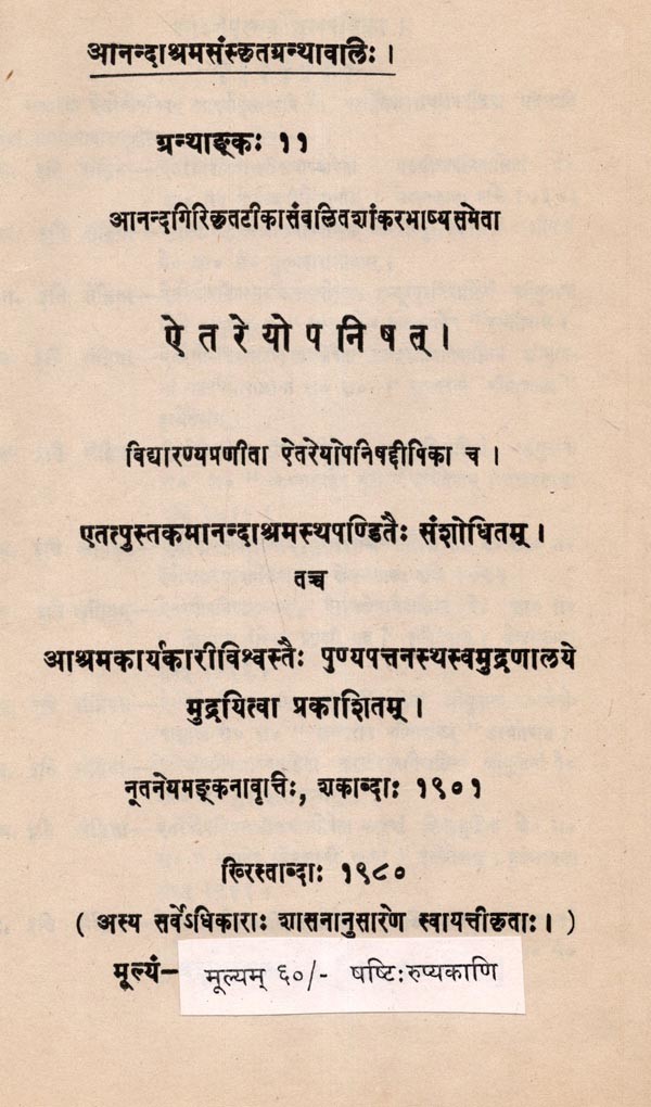 ऐतरेयोपनिषत्: Aitareya Upanishad (An Old and Rare Book)