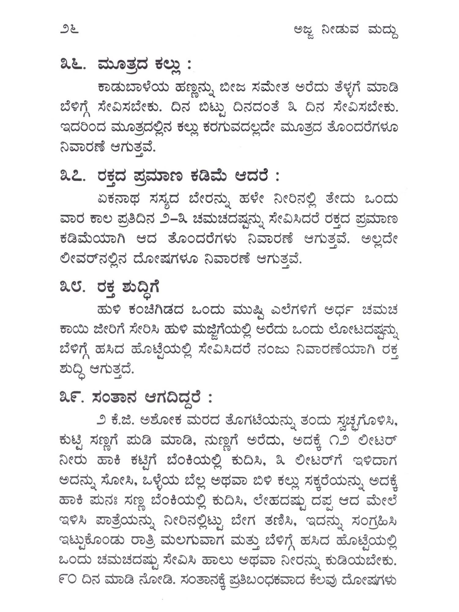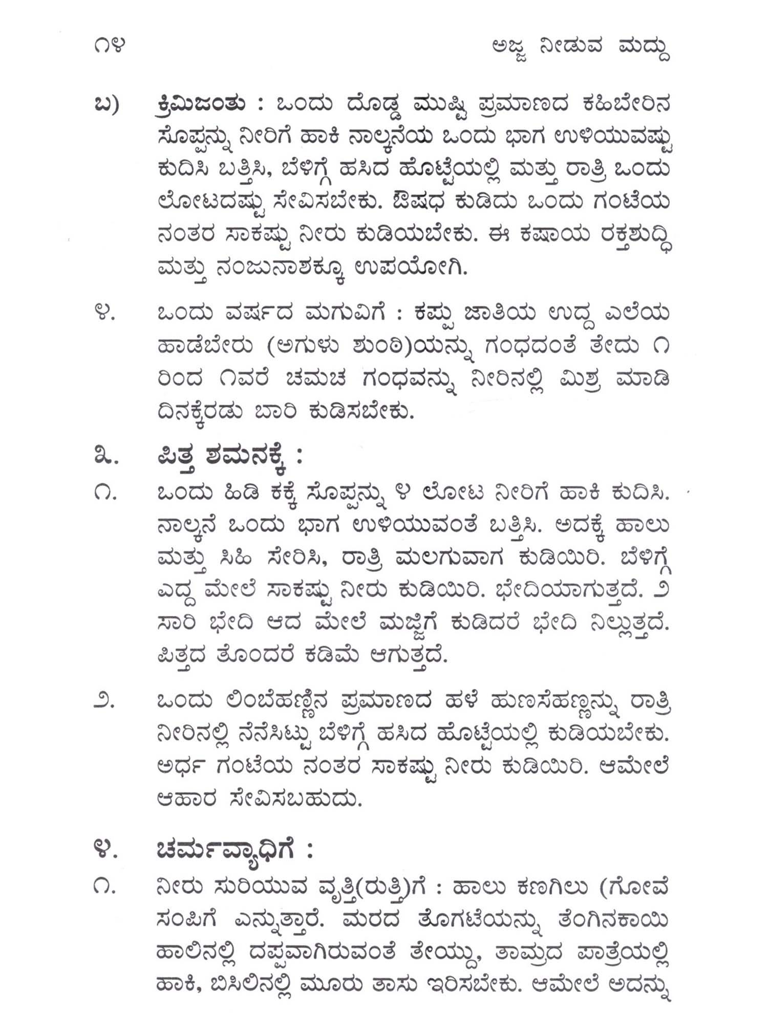 ಆಯುರ್ವೇದ ಪರಿಹಾರ (ಸಾಮಾನ್ಯ ರೋಗಗಳು): Samanya Rogagalu (Ayurveda Parihara) Kannada
