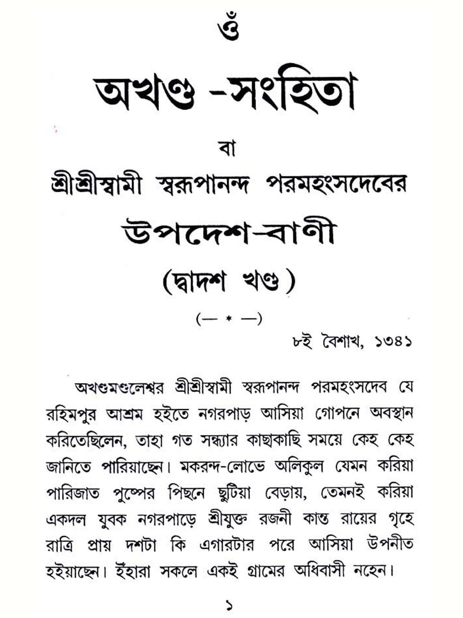 শ্রী শ্রী ভোলানাথ প্রসঙ্গে: Sri Sri Bholanatha Prasange in Bengali (Vol-1)