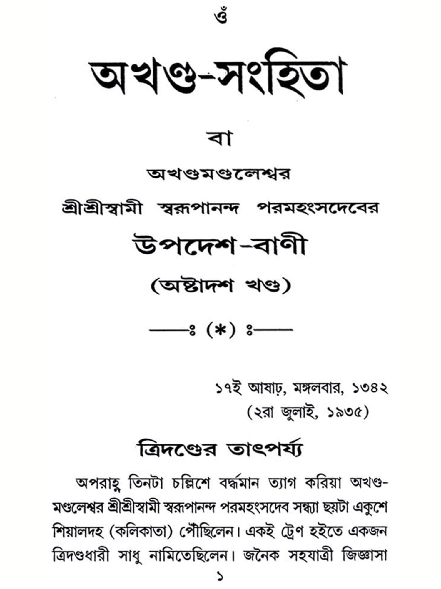 অখণ্ড-সংহিতা: Akhanda-Samhita or Sermons and Teachings of His Divine Grace in Bengali (Vol-1)
