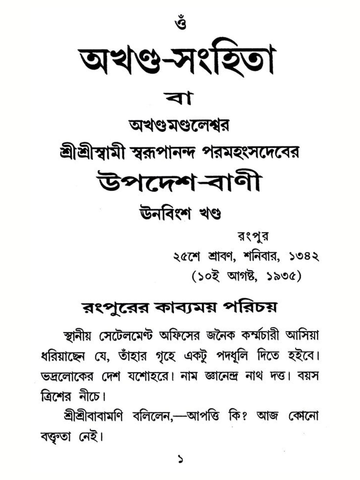 অখণ্ড-সংহিতা: Akhanda-Samhita or Sermons and Teachings of His Divine Grace in Bengali (Vol-18)
