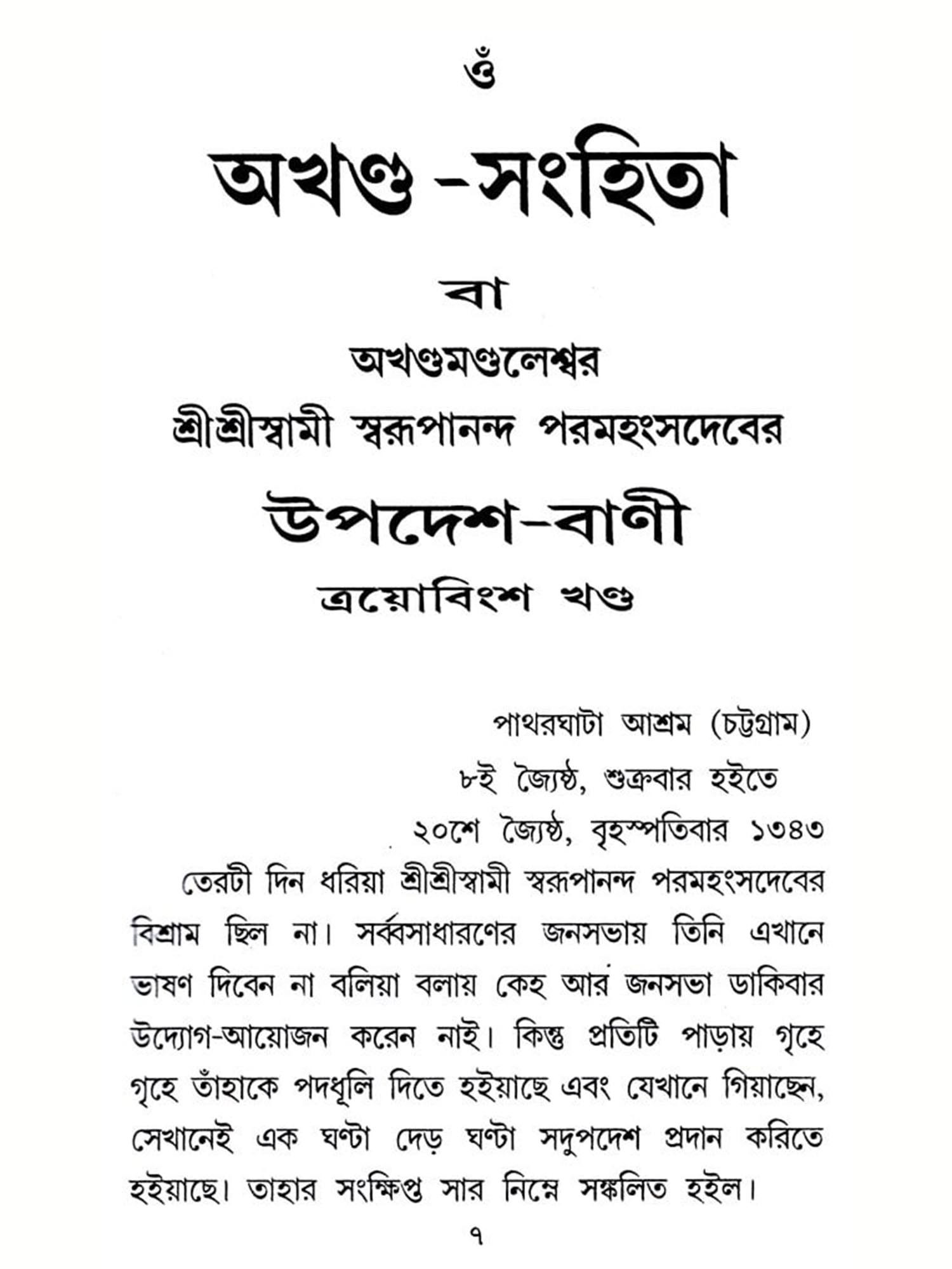 অখণ্ড-সংহিতা: Akhanda-Samhita or Sermons and Teachings of His Divine Grace in Bengali (Vol-7)